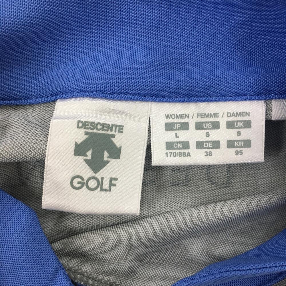 【超美品】デサントゴルフ 長袖ハイネックシャツ ブルー×ライトグレー バイカラー ハーフジップ レディース L ゴルフウェア DESCENTE