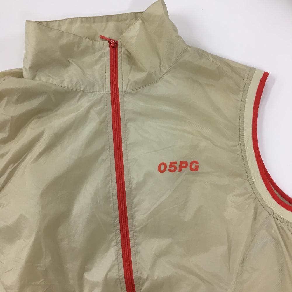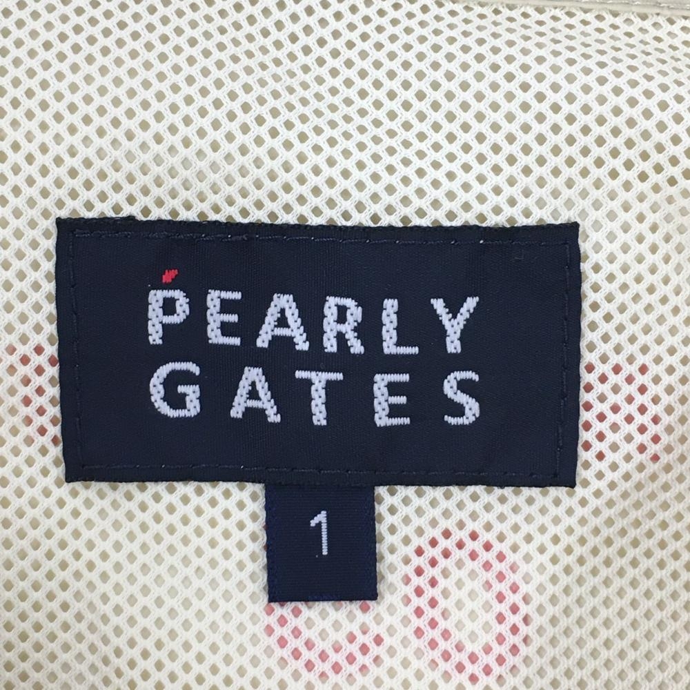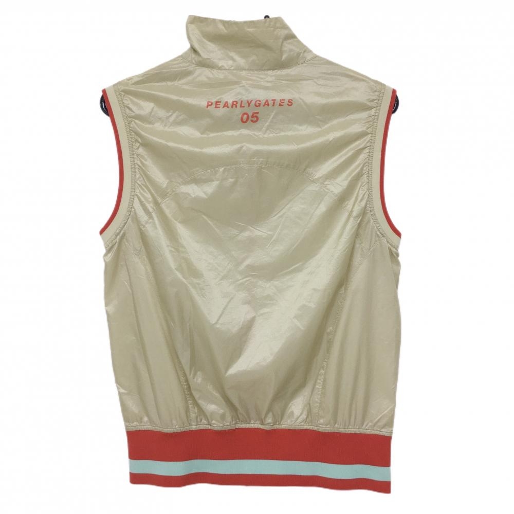 【美品】パーリーゲイツ ナイロンジップベスト ベージュ×オレンジ メッシュ裏地 裾ライン レディース 1(M) ゴルフウェア PEARLY GATES