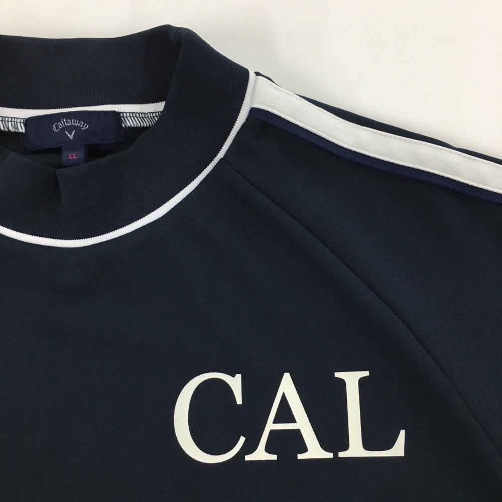 【超美品】キャロウェイ 半袖ハイネックシャツ ネイビー×白 肩ライン レディース LL ゴルフウェア 2023年モデル Callaway