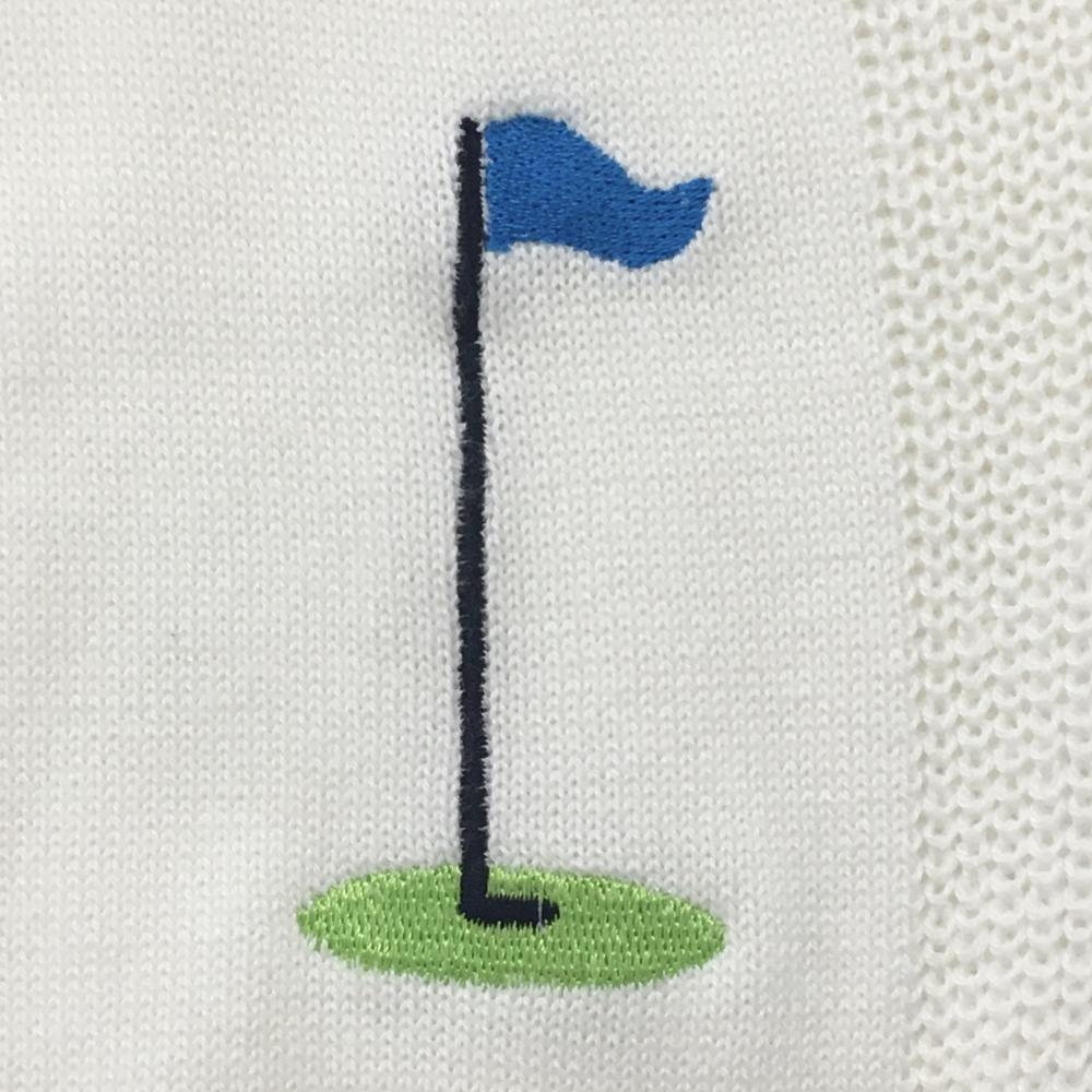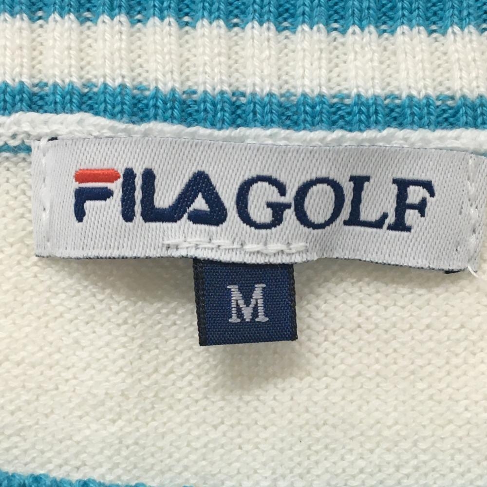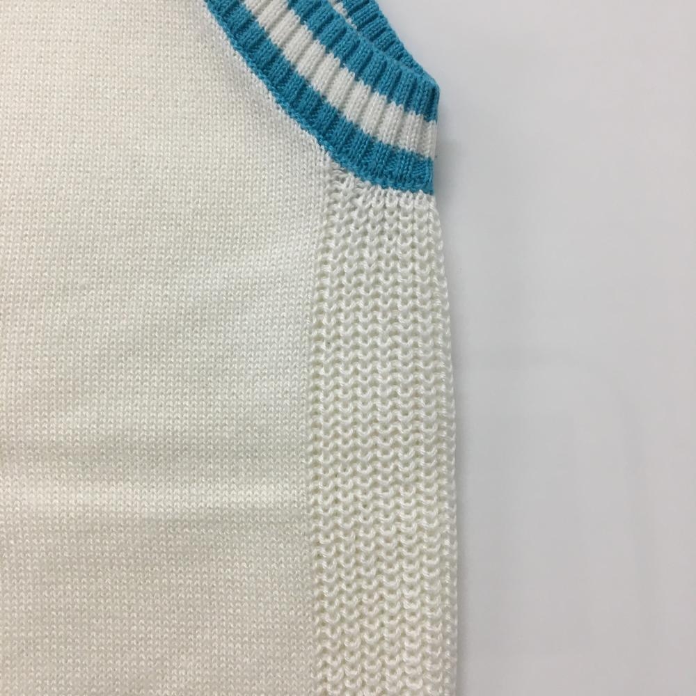 【超美品】フィラゴルフ ニットベスト 白×ライトブルー ゴルフカート柄 サイド透かし編み レディース M ゴルフウェア FILA GOLF