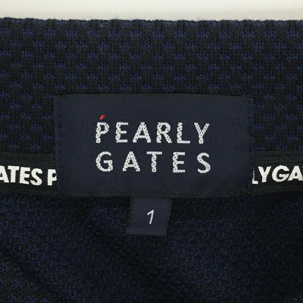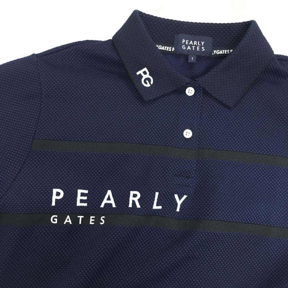【超美品】パーリーゲイツ 半袖ポロワンピース ネイビー×黒 総柄織生地 胸ロゴ レディース 1(M) ゴルフウェア 2023年モデル PEARLY GATES