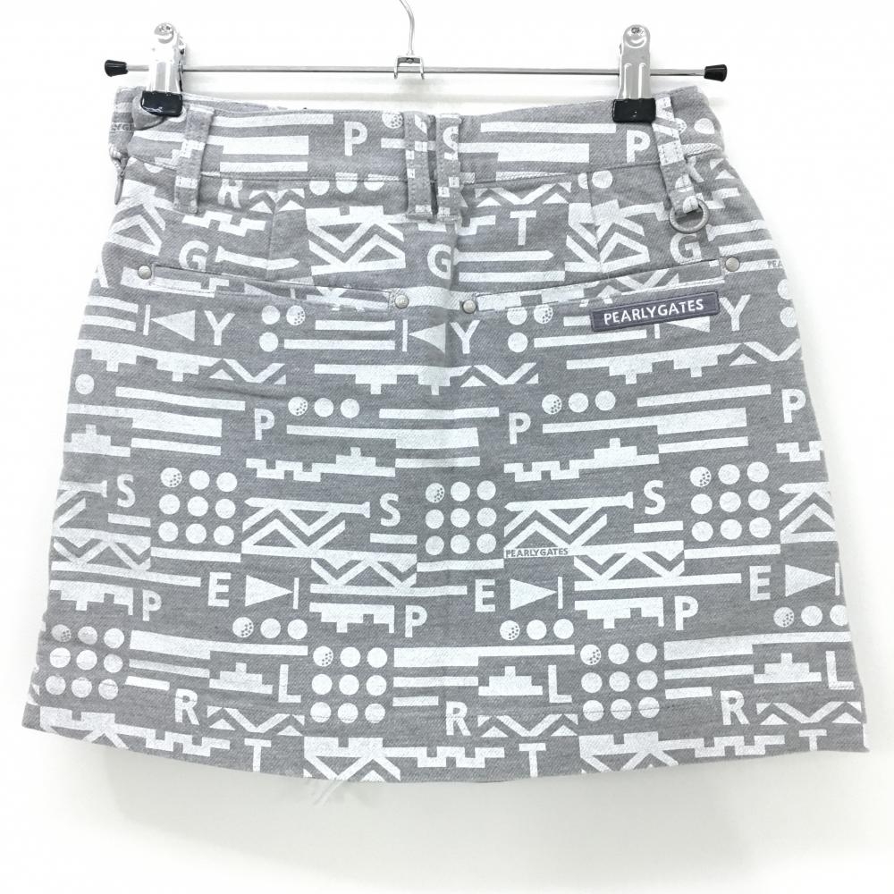 【新品】パーリーゲイツ スカート グレー×白 総柄 フリンジ ストレッチ レディース 00(XS) ゴルフウェア PEARLY GATES