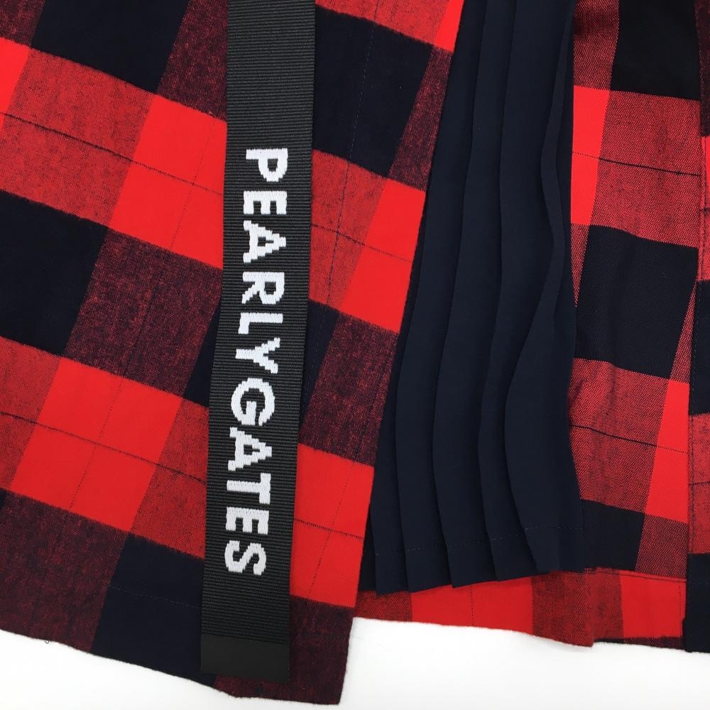 【新品】パーリーゲイツ スカート レッド×黒ダークネイビー チェック柄 サイドスリット レディース 0(S ) ゴルフウェア PEARLY GATES