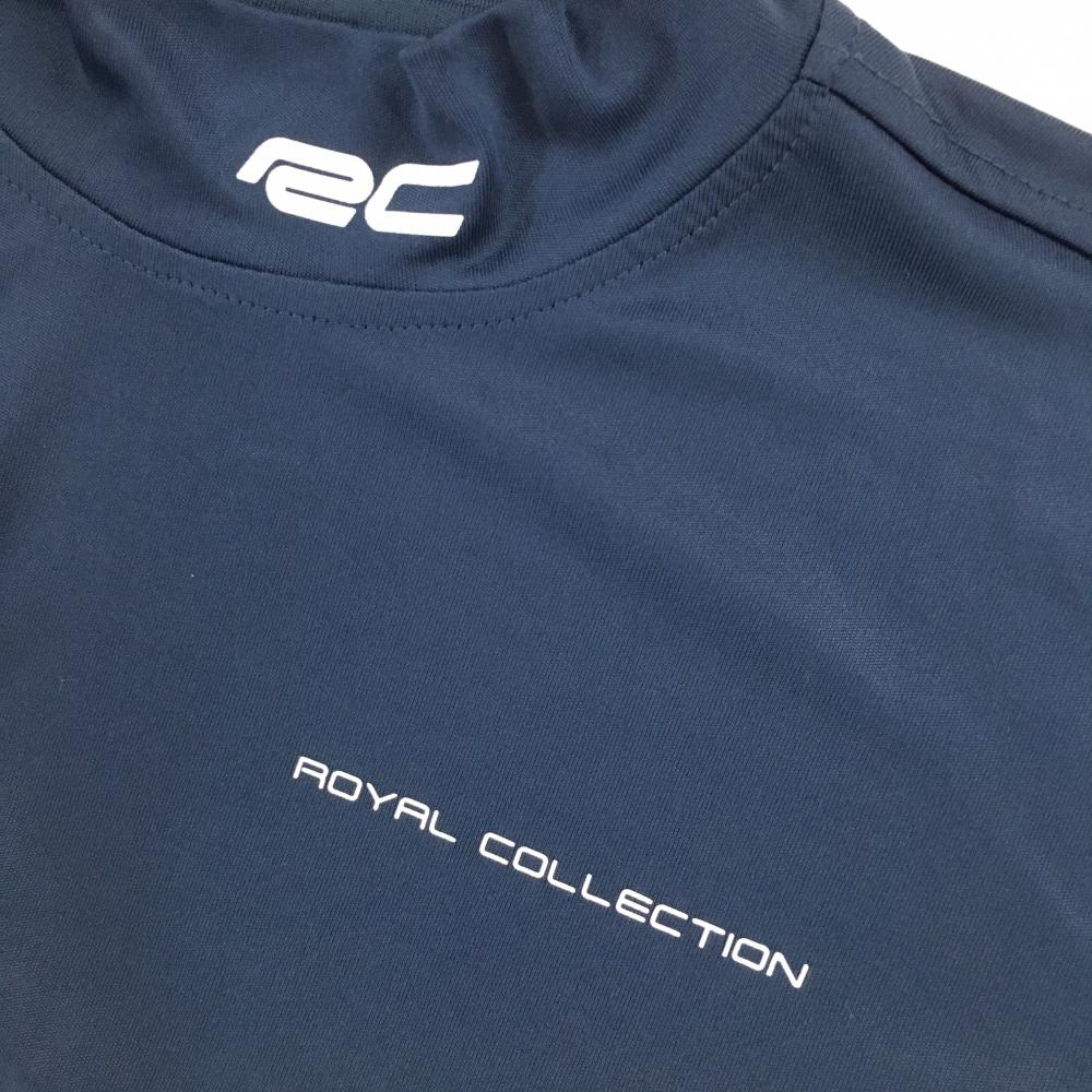 【超美品】ロイヤルコレクション 半袖ハイネックシャツ ネイビー 胸・ネックロゴ ストレッチ メンズ LL ゴルフウェア ROYAL COLLECTION