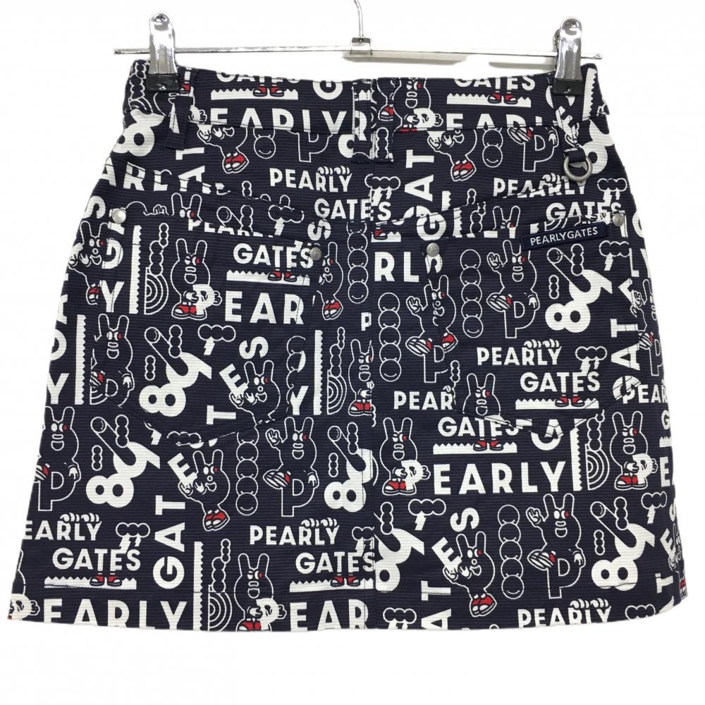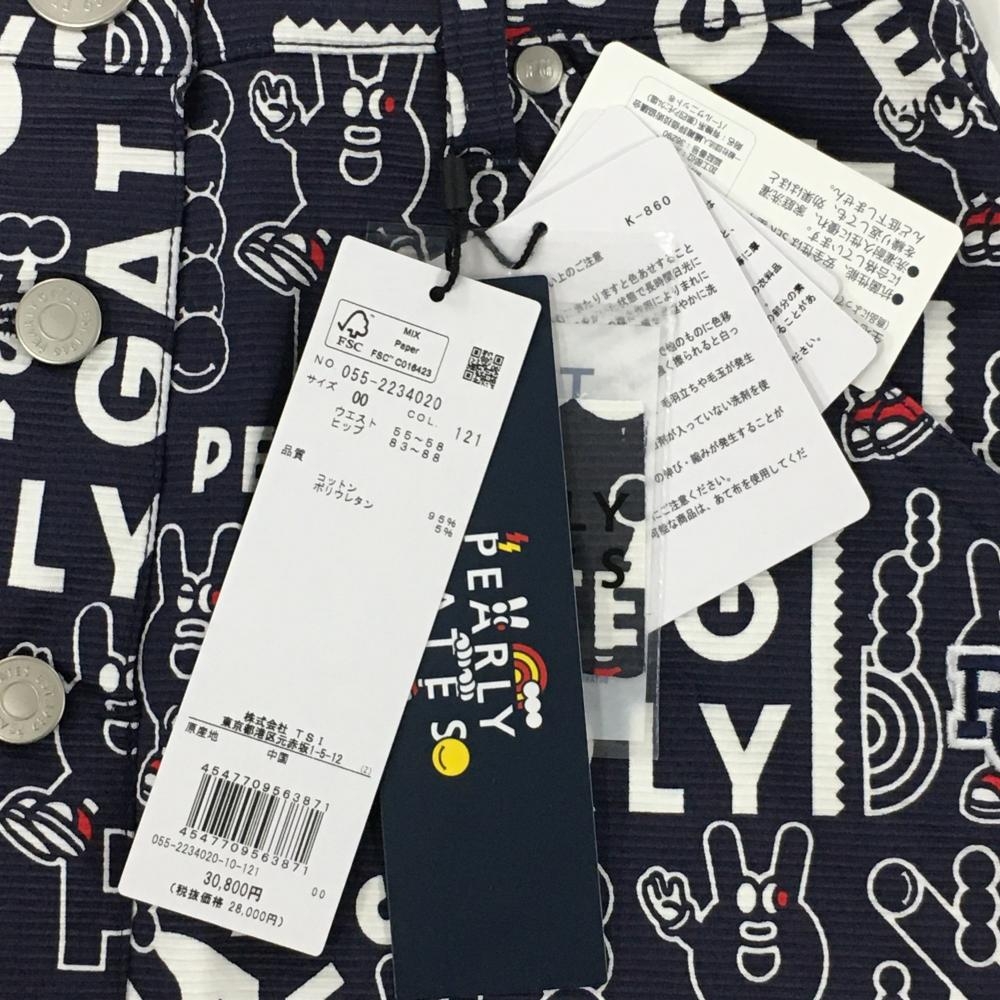 【新品】パーリーゲイツ スカート ネイビー×白 ロゴ総柄 どうしちゃったPG レディース 00(XS) ゴルフウェア PEARLY GATES