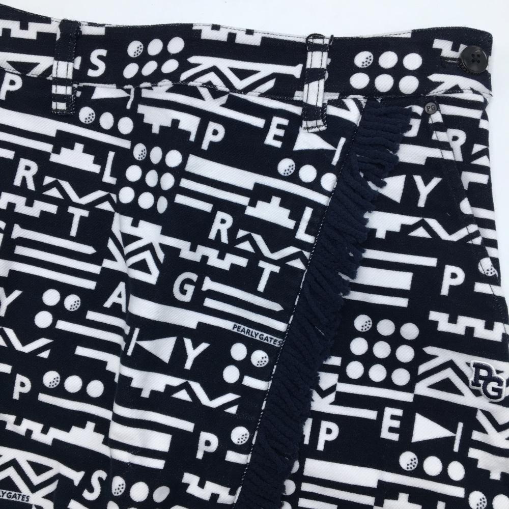 【新品】パーリーゲイツ スカート ダークネイビー×白 総柄 フリンジ ストレッチ レディース 0(S) ゴルフウェア PEARLY GATES