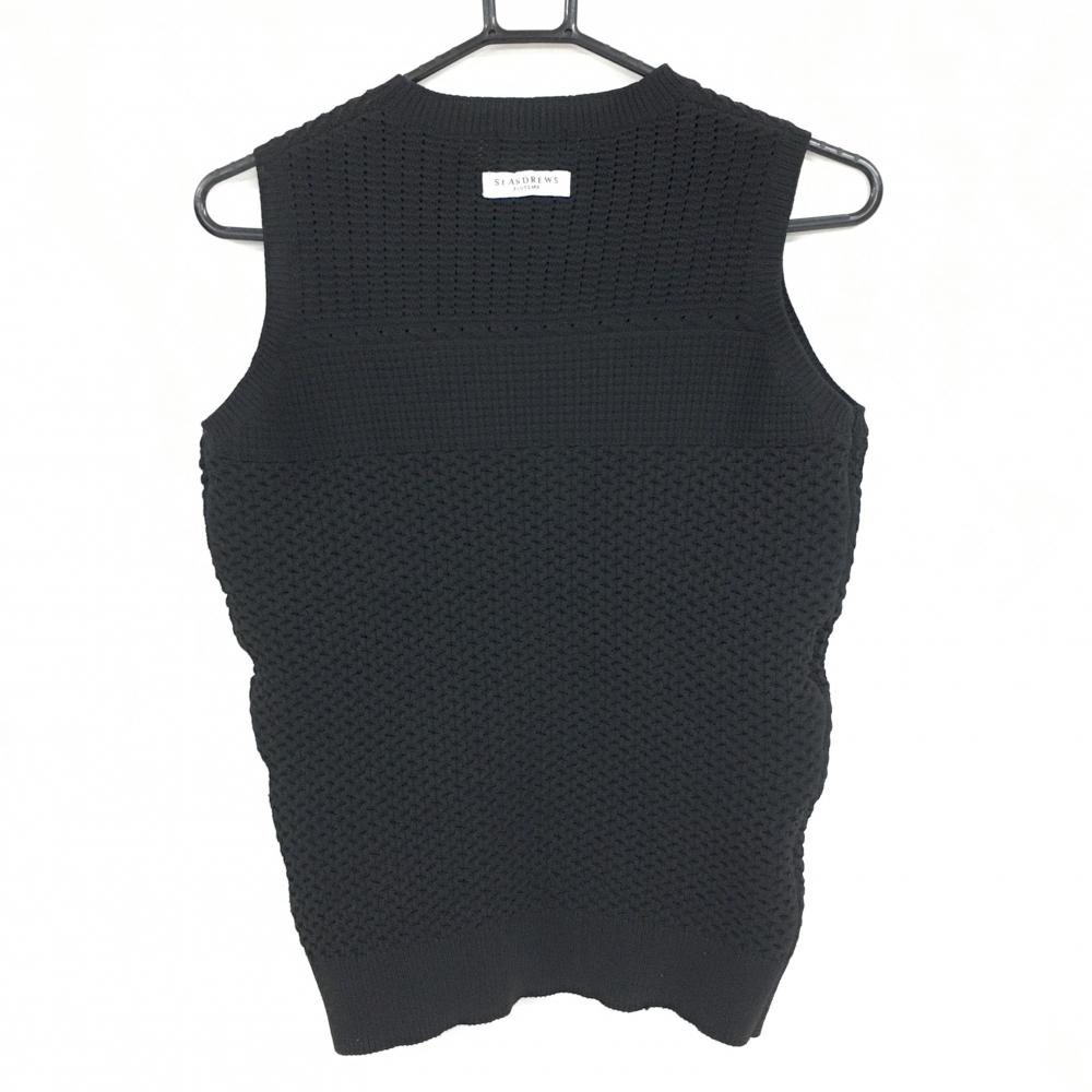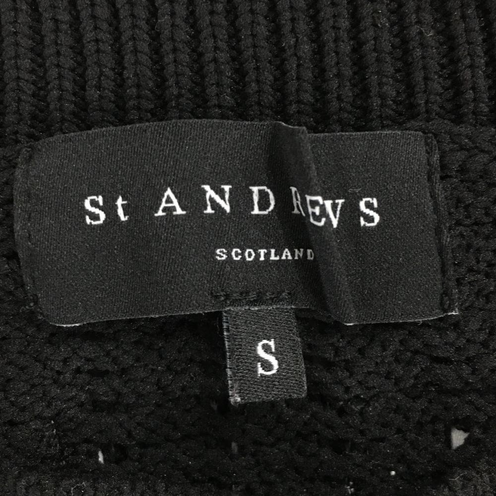 【超美品】セントアンドリュース ニットベスト 黒 ロゴ刺しゅう 上部透かし編み レディース S ゴルフウェア St ANDREWS