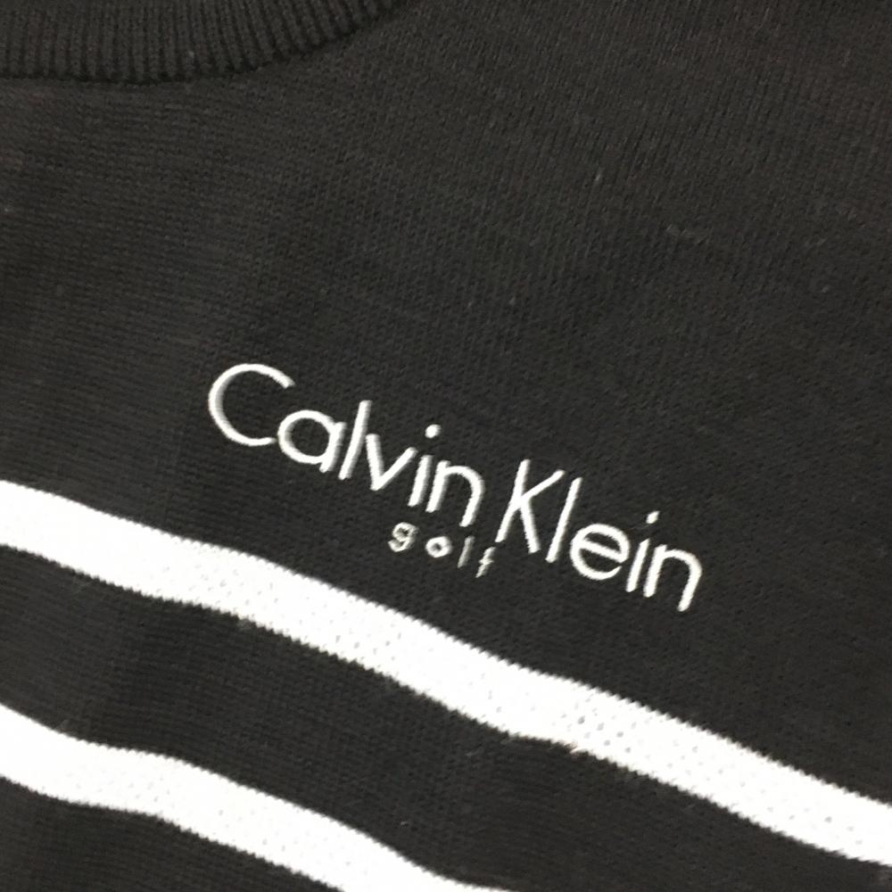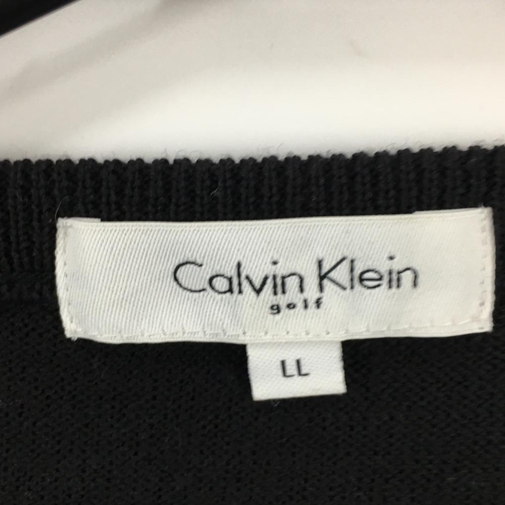 【美品】カルバンクラインゴルフ セーター 黒×ライトグレー ボーダー ウール100% ニット メンズ LL ゴルフウェア Calvin Klein golf