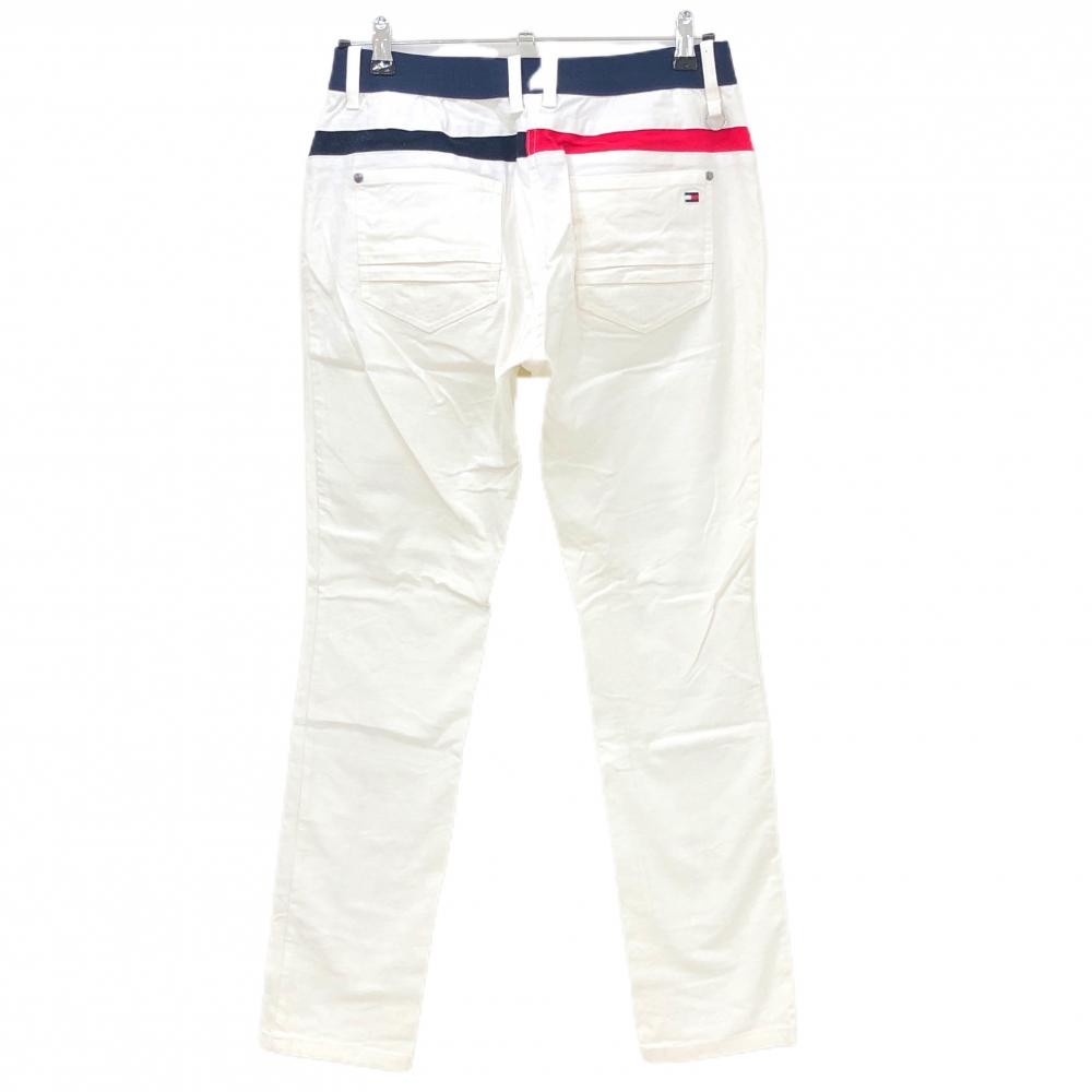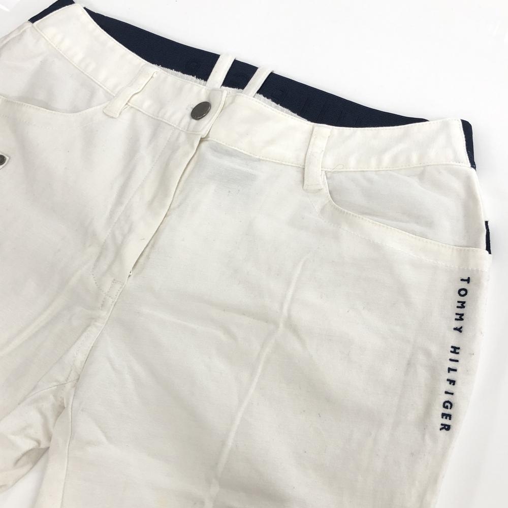 トミーヒルフィガー パンツ 白×ネイビー ベルト部一部ゴムロゴ ストレッチ レディース L ゴルフウェア Tommy Hilfiger Golf