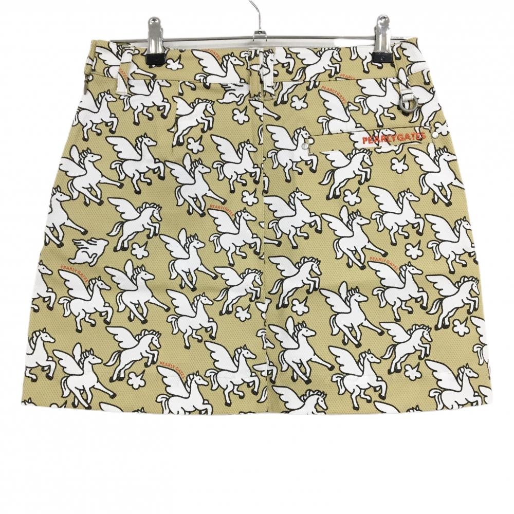 【新品】パーリーゲイツ スカート ベージュ系×白 ペガサス柄 ロゴオレンジ レディース 1 ゴルフウェア PEARLY GATES