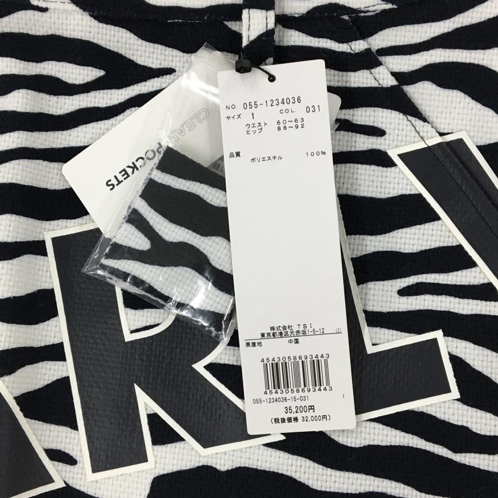 【新品】パーリーゲイツ スカート 白×黒 ゼブラ柄 織生地 ビッグロゴプリント レディース 1(M) ゴルフウェア PEARLY GATES