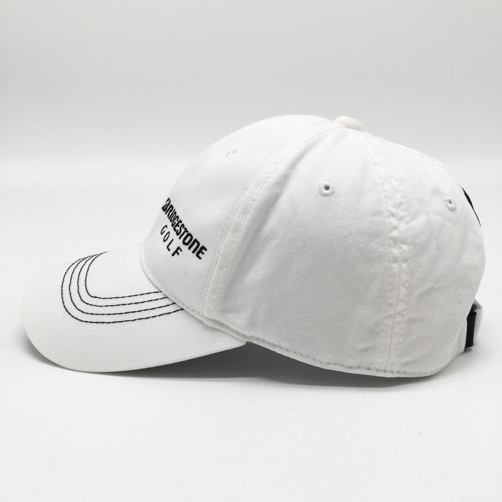 【超美品】ブリヂストンゴルフ キャップ 白×黒 ロゴ刺しゅう フリーサイズ(約56-59cm) ゴルフウェア Bridgestone