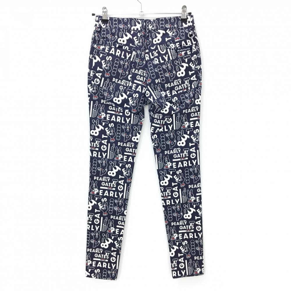 【新品】パーリーゲイツ パンツ ネイビー×白 ロゴ総柄 どうしちゃったPG レディース 0(S) ゴルフウェア PEARLY GATES