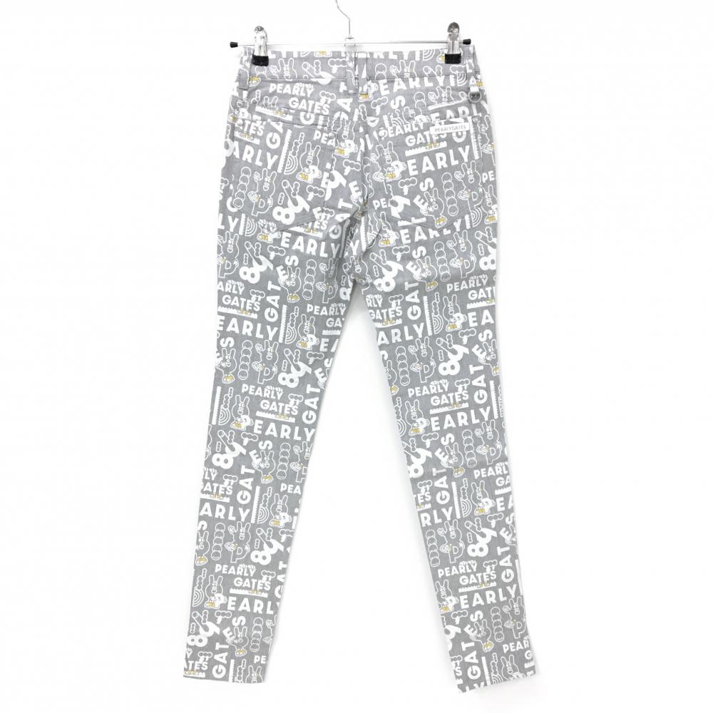 【新品】パーリーゲイツ パンツ グレー×白 ロゴ総柄 どうしちゃったPG レディース 0(S) ゴルフウェア PEARLY GATES