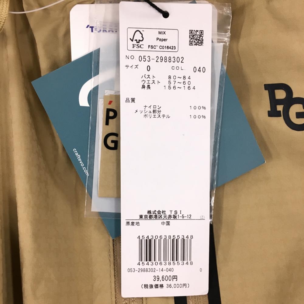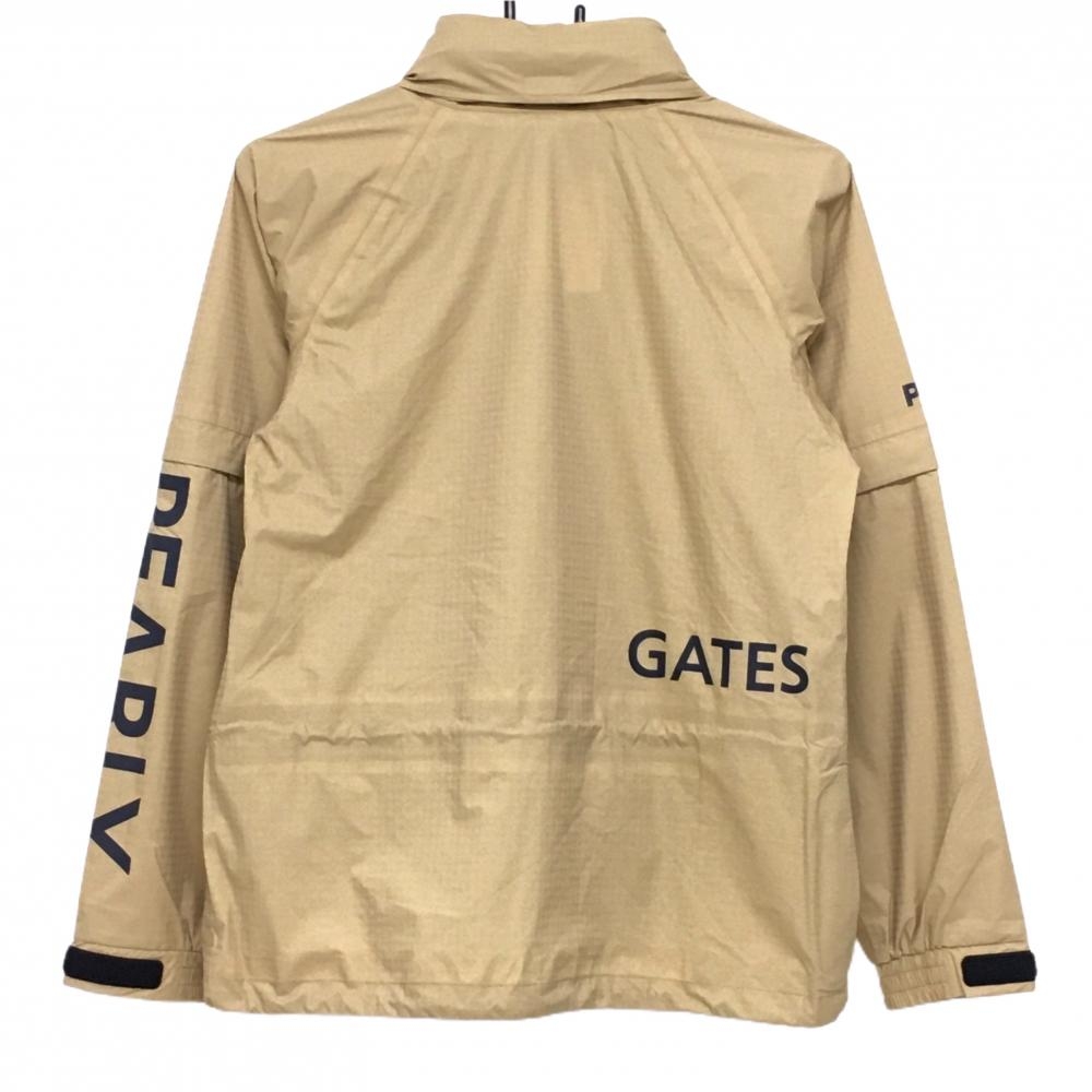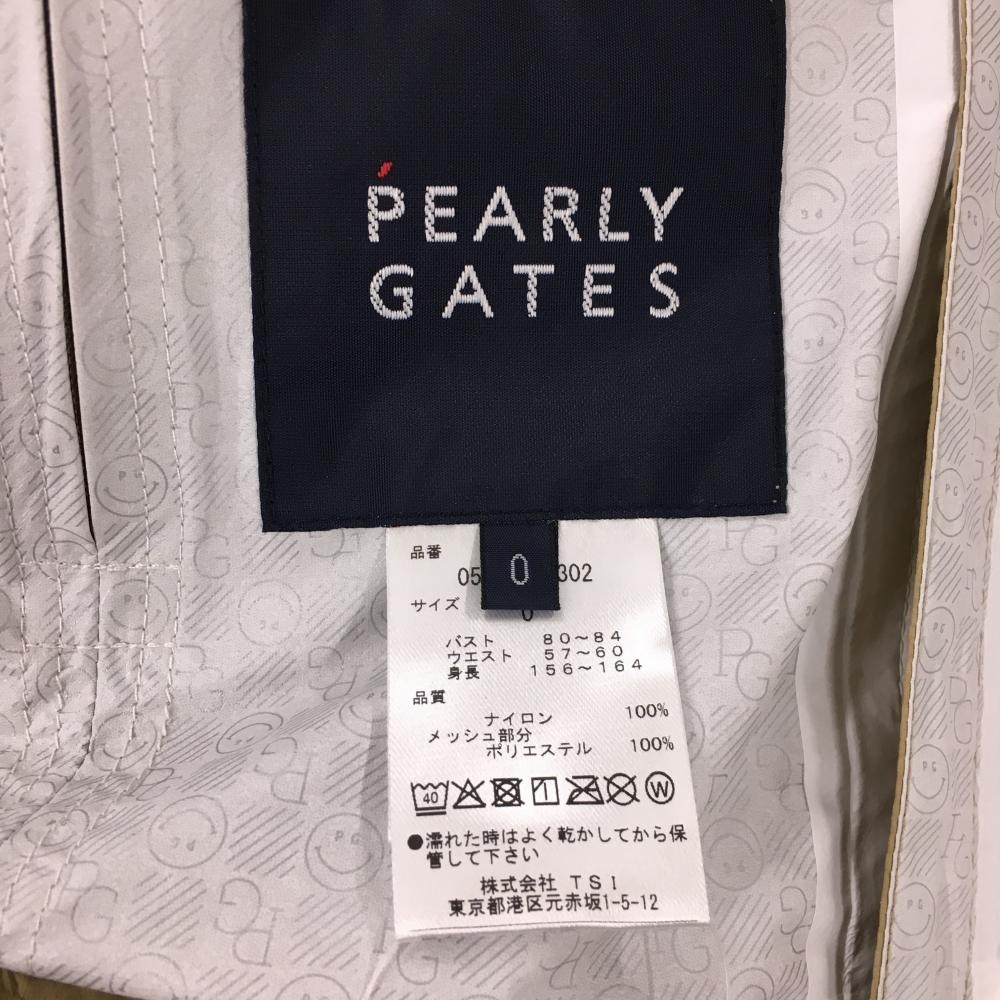 【新品】パーリーゲイツ 2WAYレインジャケット ベージュ×ネイビー 地模様 袖着脱可 フード付 レディース 0(S) ゴルフウェア PEARLY GATES