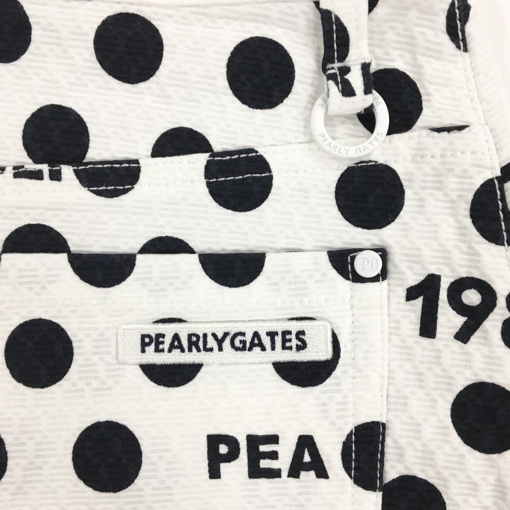 【新品】パーリーゲイツ スカート 白×黒 ドット柄 ロゴ刺しゅう ストレッチ レディース 1(M) ゴルフウェア PEARLY GATES