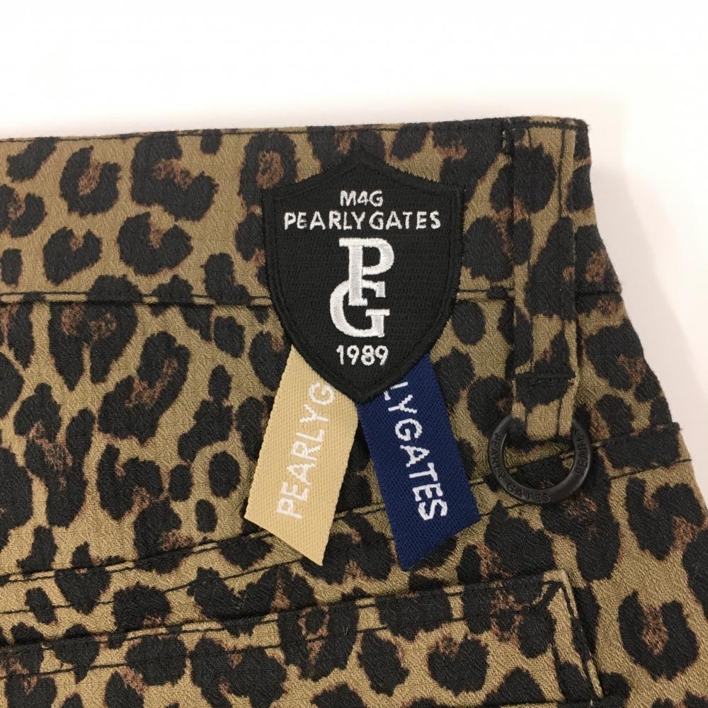 【新品】パーリーゲイツ パンツ ベージュ系×黒 レオパード ロゴ白 ストレッチ レディース 0(S) ゴルフウェア PEARLY GATES