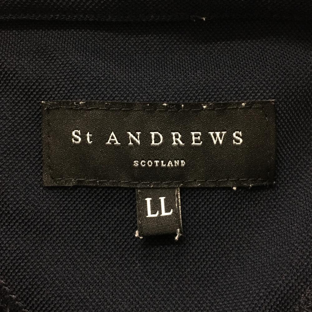 【超美品】セントアンドリュース 半袖ポロシャツ ネイビー×白 総柄刺しゅう メンズ LL ゴルフウェア 2025年モデル St ANDREWS