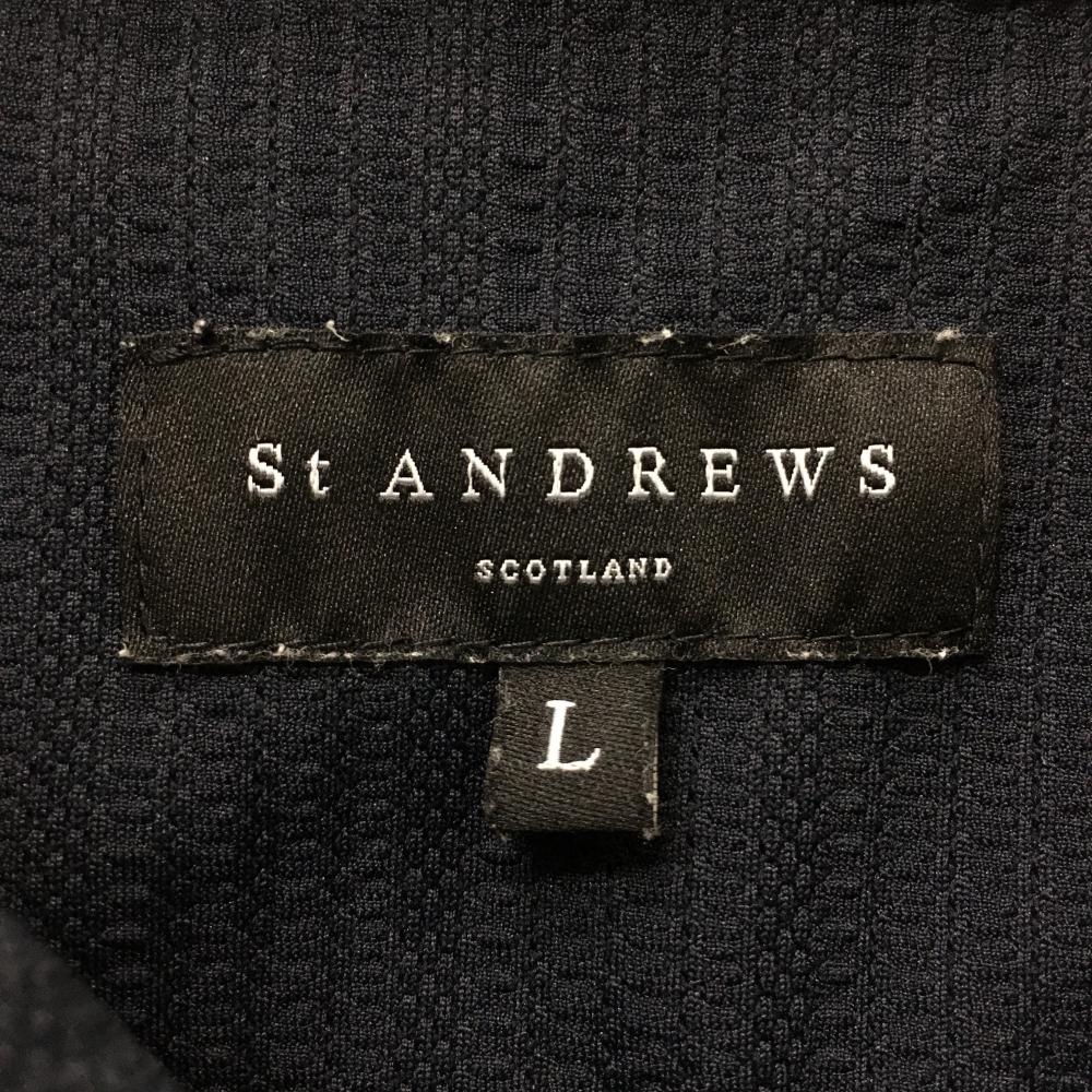 【超美品】セントアンドリュース 半袖ポロシャツ ネイビー ハイゲージストライプ UVカット メンズ L ゴルフウェア 2025年モデル St ANDREWS