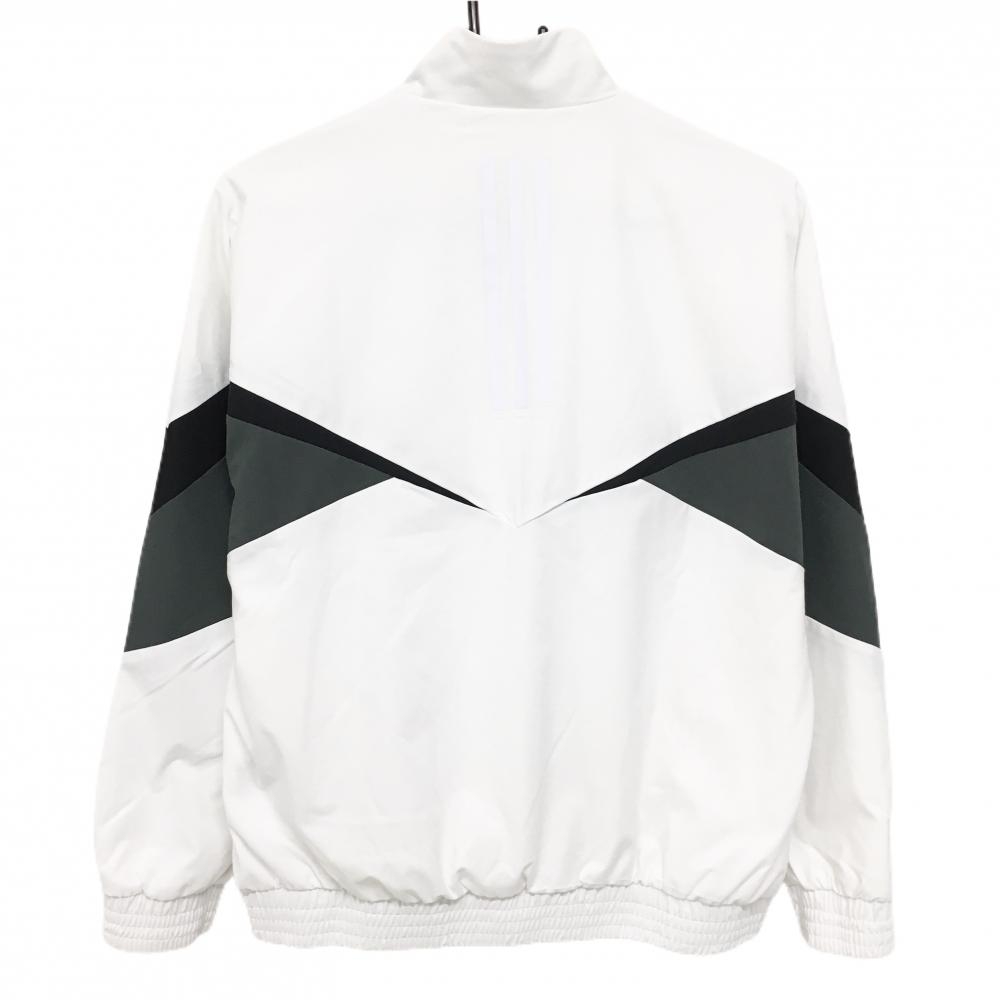 【美品】アディダス ジャケットブルゾン 白×グリーン 裏地メッシュ 背面3ライン メンズ M ゴルフウェア 2024年モデル adidas