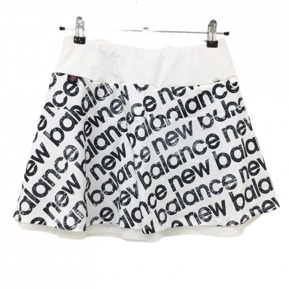 【超美品】ニューバランスゴルフ スカート 白×ネイビー ロゴ総柄 裏地メッシュ ウエストゴム レディース 0(S) ゴルフウェア New Balance
