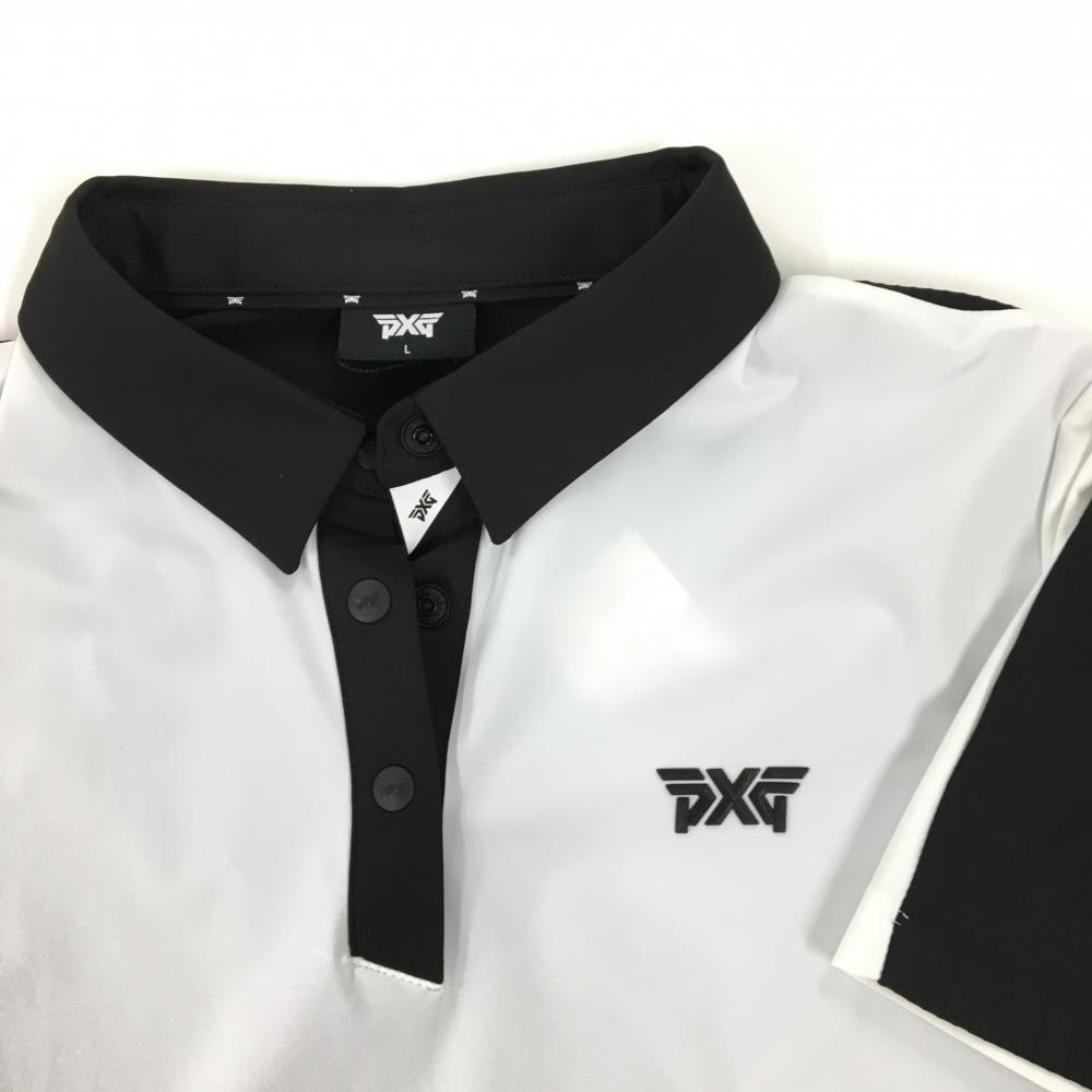【新品】パーソンズエクストリームゴルフ 半袖ポロシャツ 白×黒 背面地模様 スナップボタン レディース L ゴルフウェア PXG