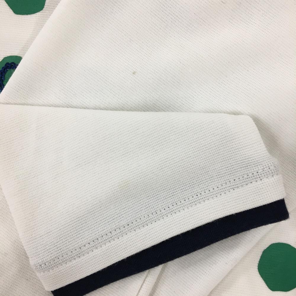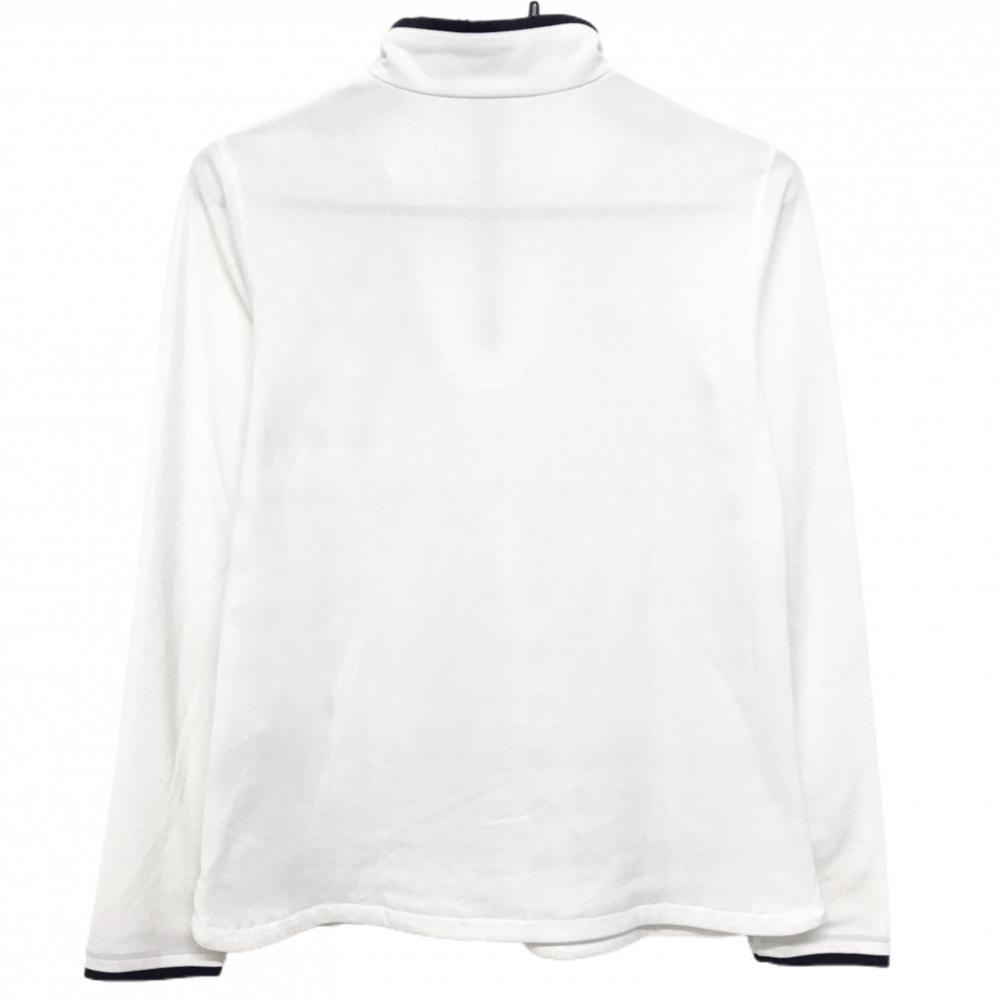【美品】アダバット 長袖ハイネックシャツ 白×グリーン ドット ハーフジップ レディース 38(M) ゴルフウェア adabat