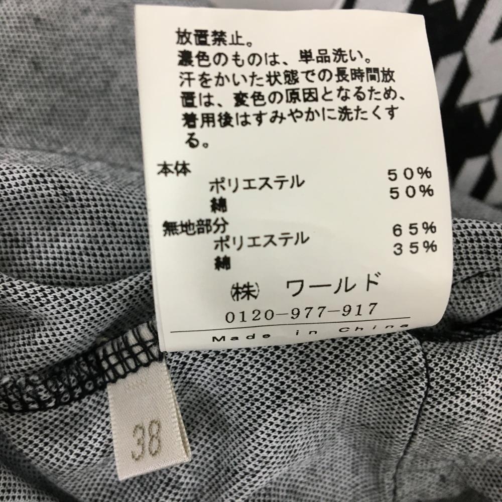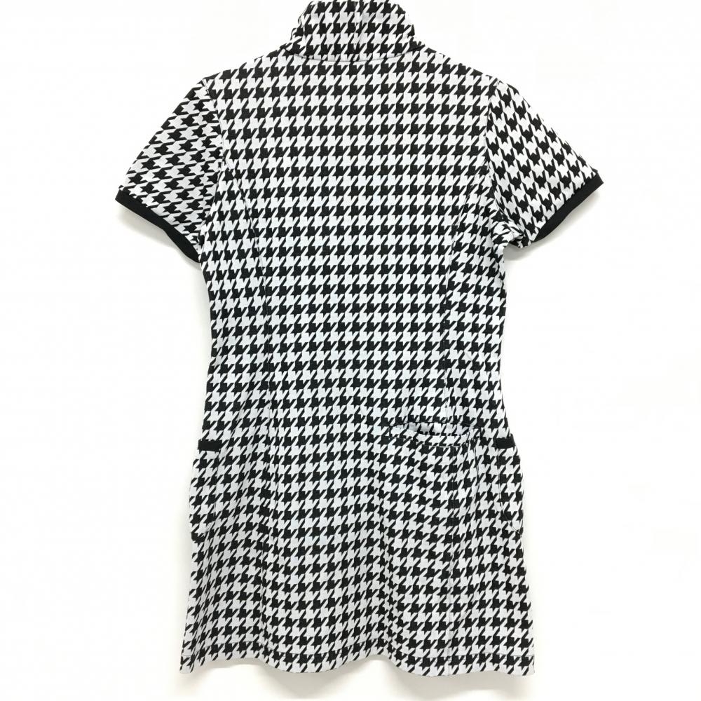 【美品】アダバット 半袖ハイネックワンピース 黒×白 千鳥格子 ハーフジップ レディース 38(M) ゴルフウェア adabat
