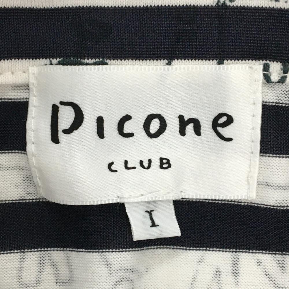 【美品】ピッコーネクラブ 半袖ポロシャツ ネイビー×白 ボーダー 総柄 レディース I(M) ゴルフウェア PICONE