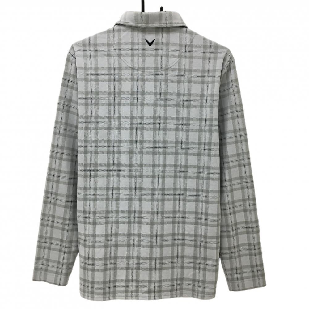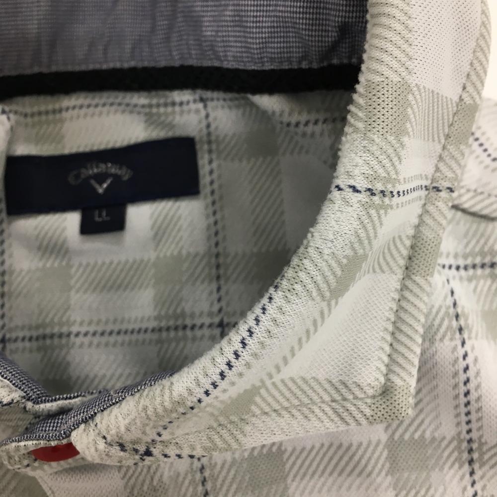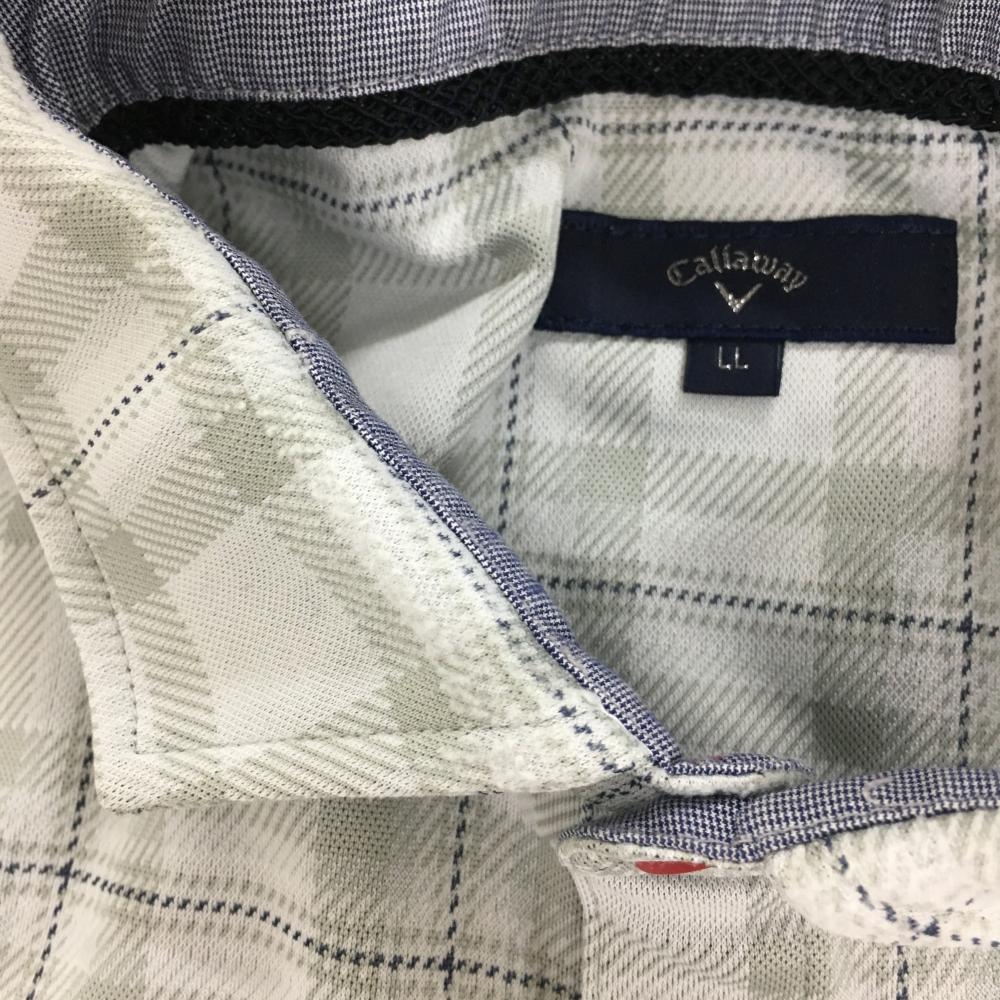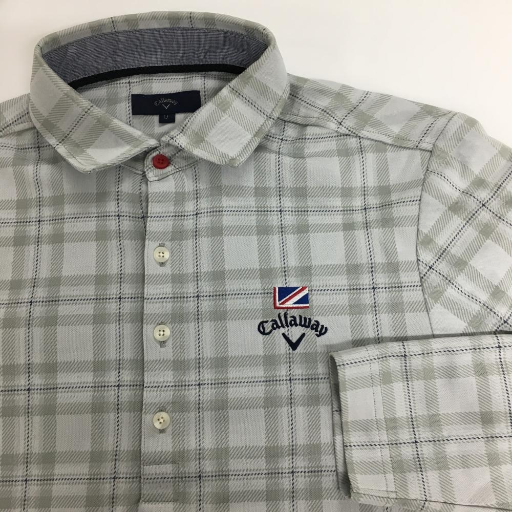 【美品】キャロウェイ 長袖ポロシャツ グレー系×ネイビー チェック 胸ロゴ刺しゅう メンズ LL ゴルフウェア Callaway