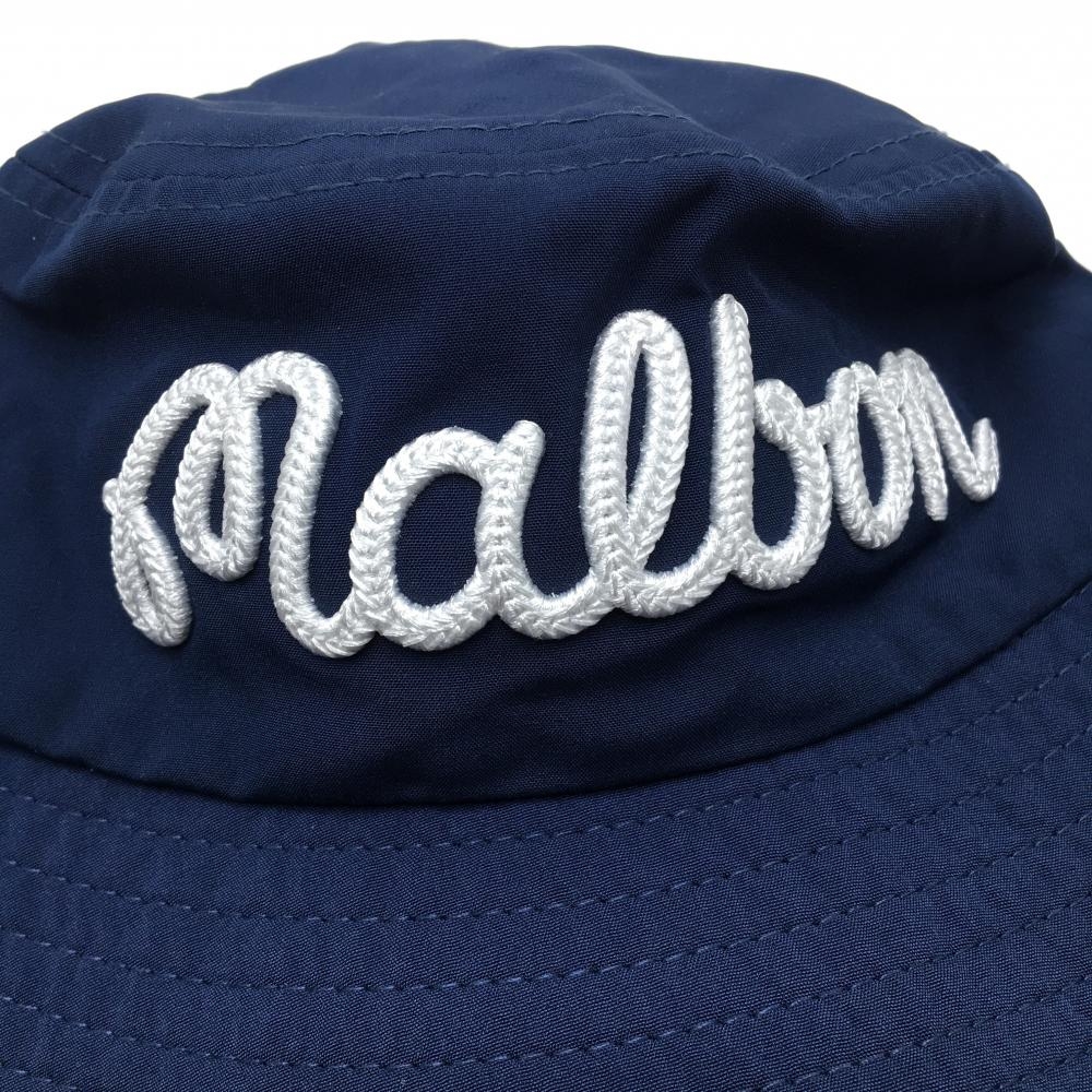 【超美品】マルボン ハット ネイビー×白 ロゴ刺しゅう S/M ゴルフウェア Malbon
