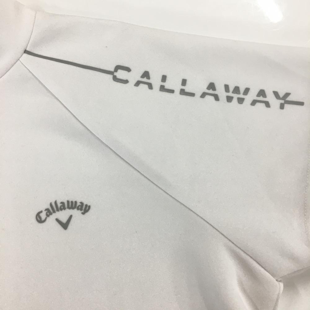 【超美品】キャロウェイ 半袖ハイネックシャツ 白×ライトグレー 袖ロゴ レディース L ゴルフウェア Callaway