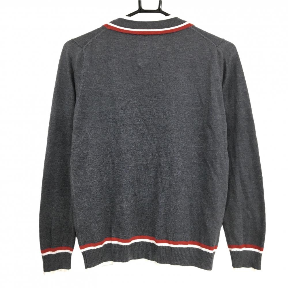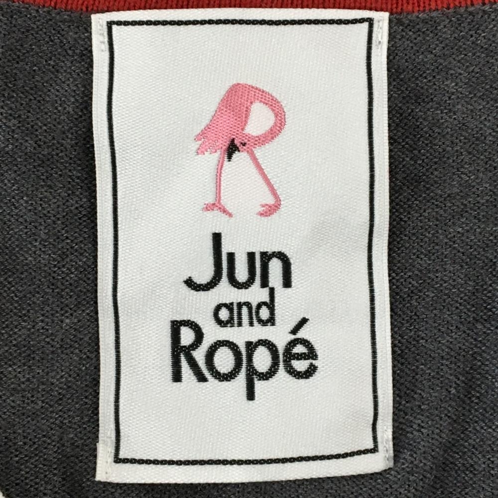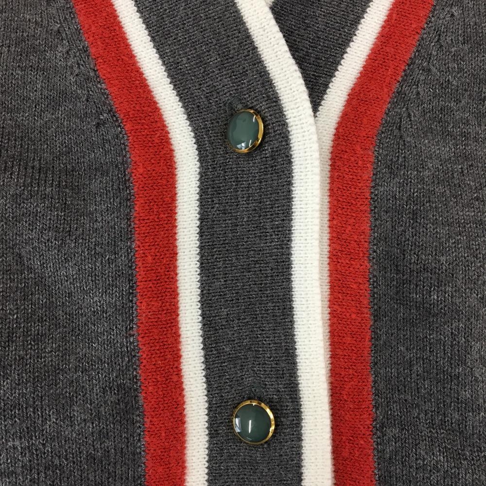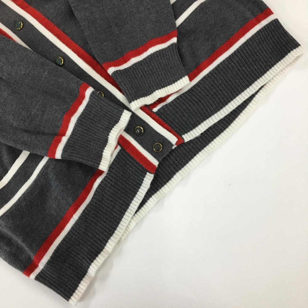 【美品】ジュンアンドロペ ニットカーディガン グレー×レッド 左右ポケット付 レディース 表記なし ゴルフウェア サンプル品 JUN&ROPE