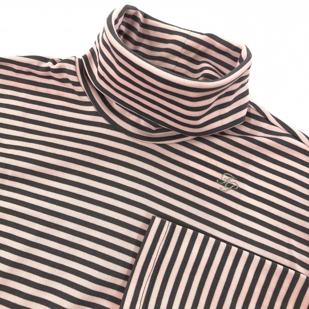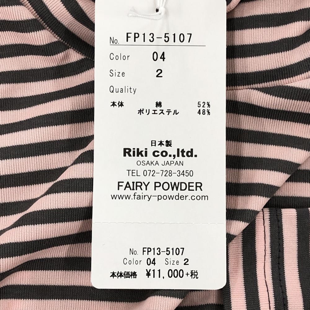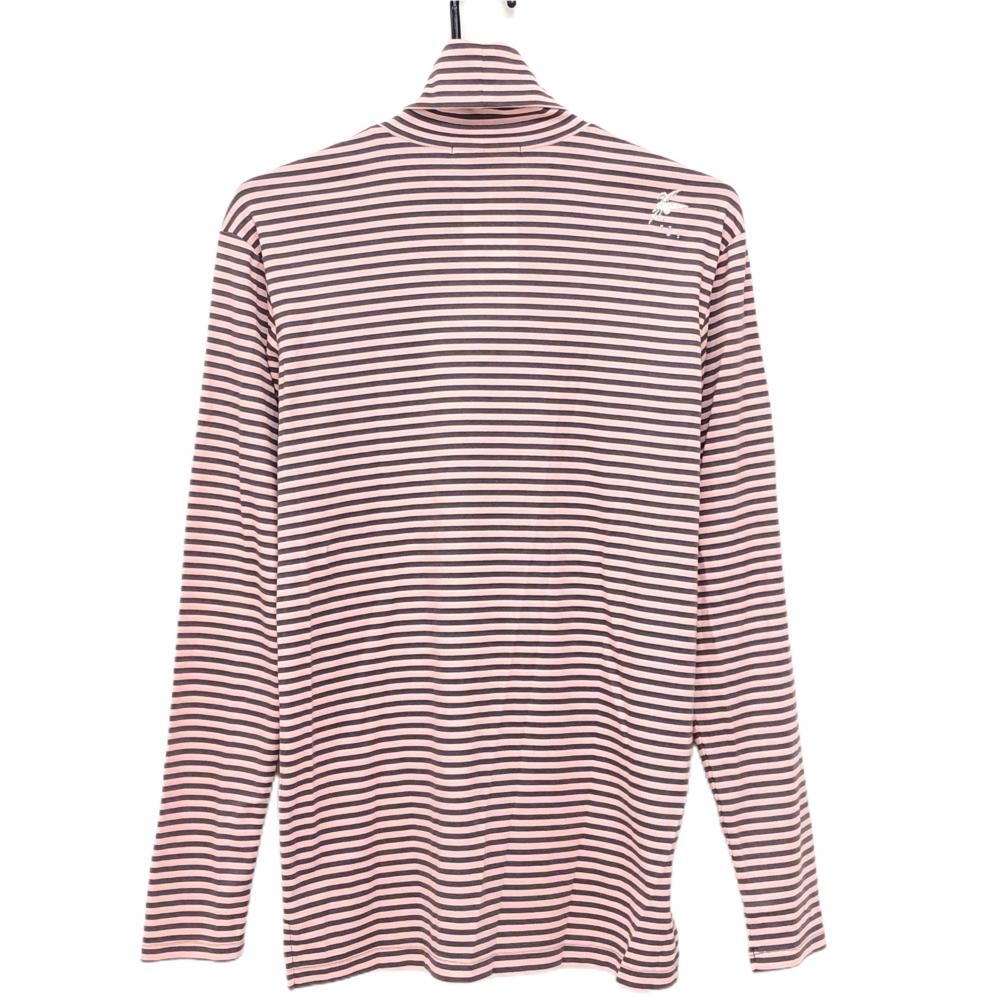 【新品】フェアリーパウダー 長袖ハイネックシャツ ピンク×ダークグレー ボーダー 綿混 メンズ 2(M) ゴルフウェア FAIRY POWDER