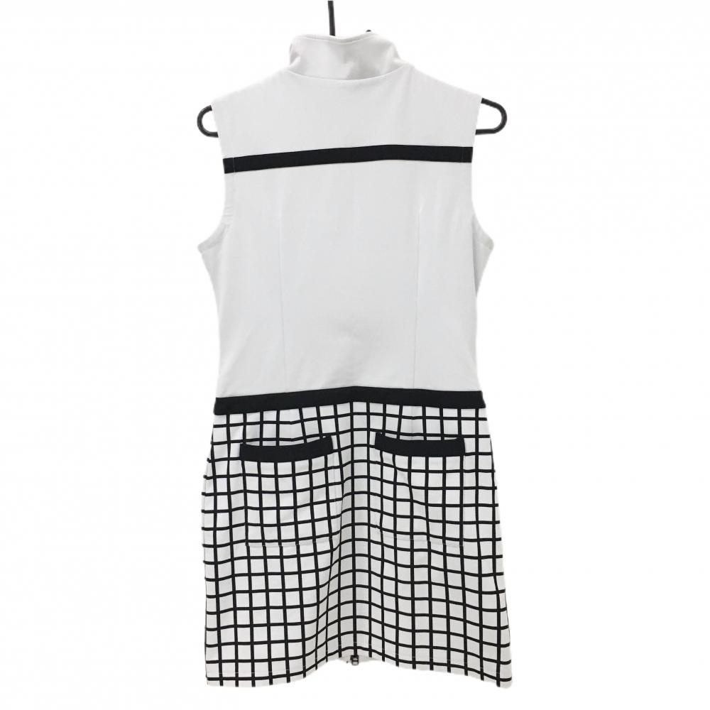 【超美品】キャロウェイ ノースリーブワンピース 白×黒 スカート部格子柄 裏地付き レディース M ゴルフウェア Callaway