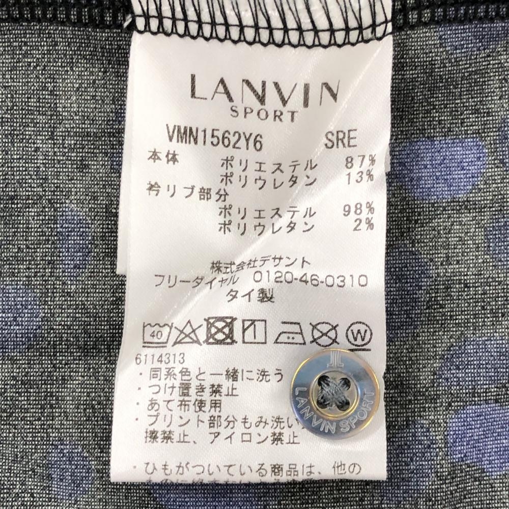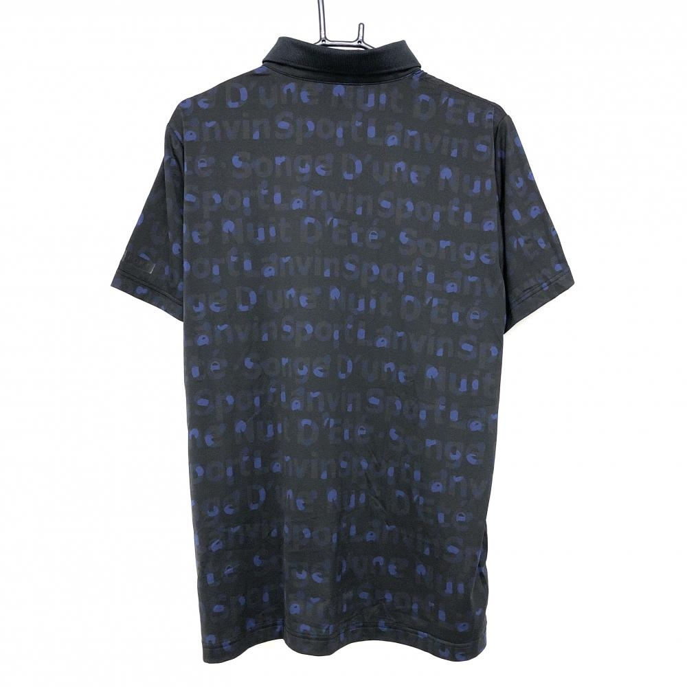 【超美品】ランバンスポール 半袖ポロシャツ 黒×ネイビー 英字柄 メンズ 40(L) ゴルフウェア LANVIN SPORT