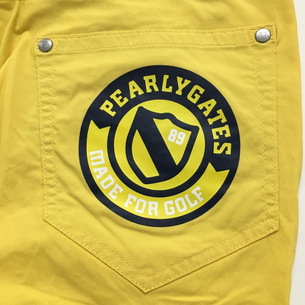 【美品】パーリーゲイツ パンツ イエロー×ネイビー 後ろロゴプリント ストレッチ レディース 0(S) ゴルフウェア PEARLY GATES