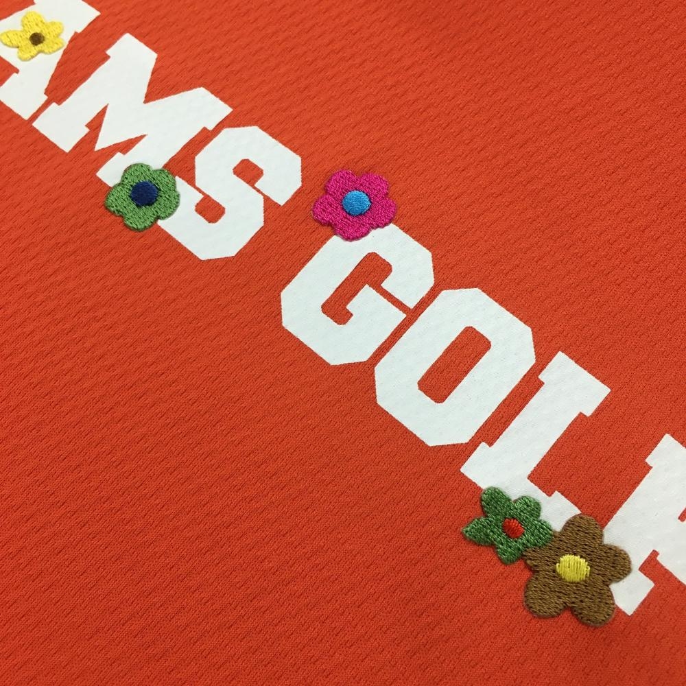 ビームスゴルフ 半袖ハイネックシャツ オレンジ ロゴプリント 花刺しゅう 日本製 レディース L ゴルフウェア BEAMS GOLF