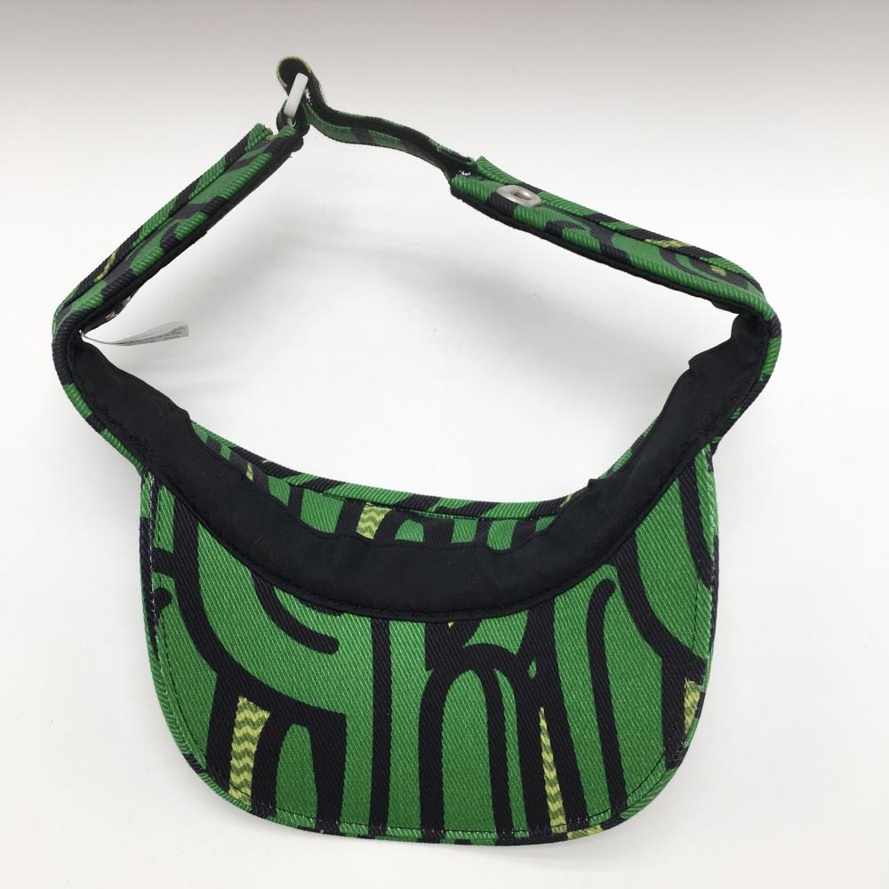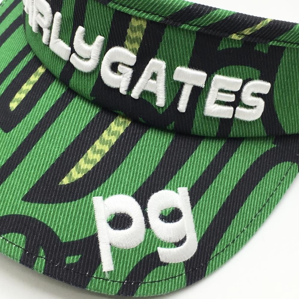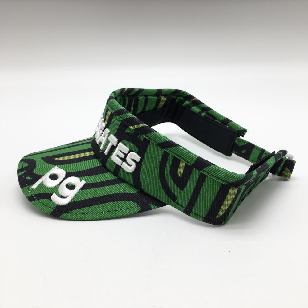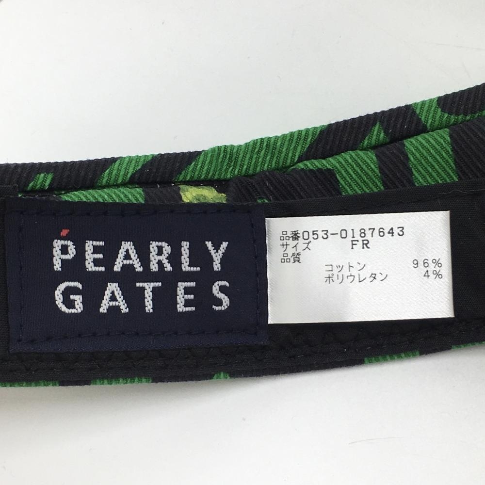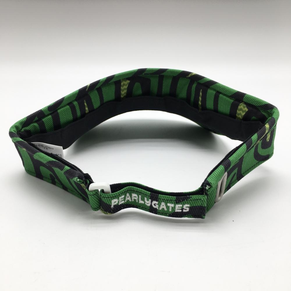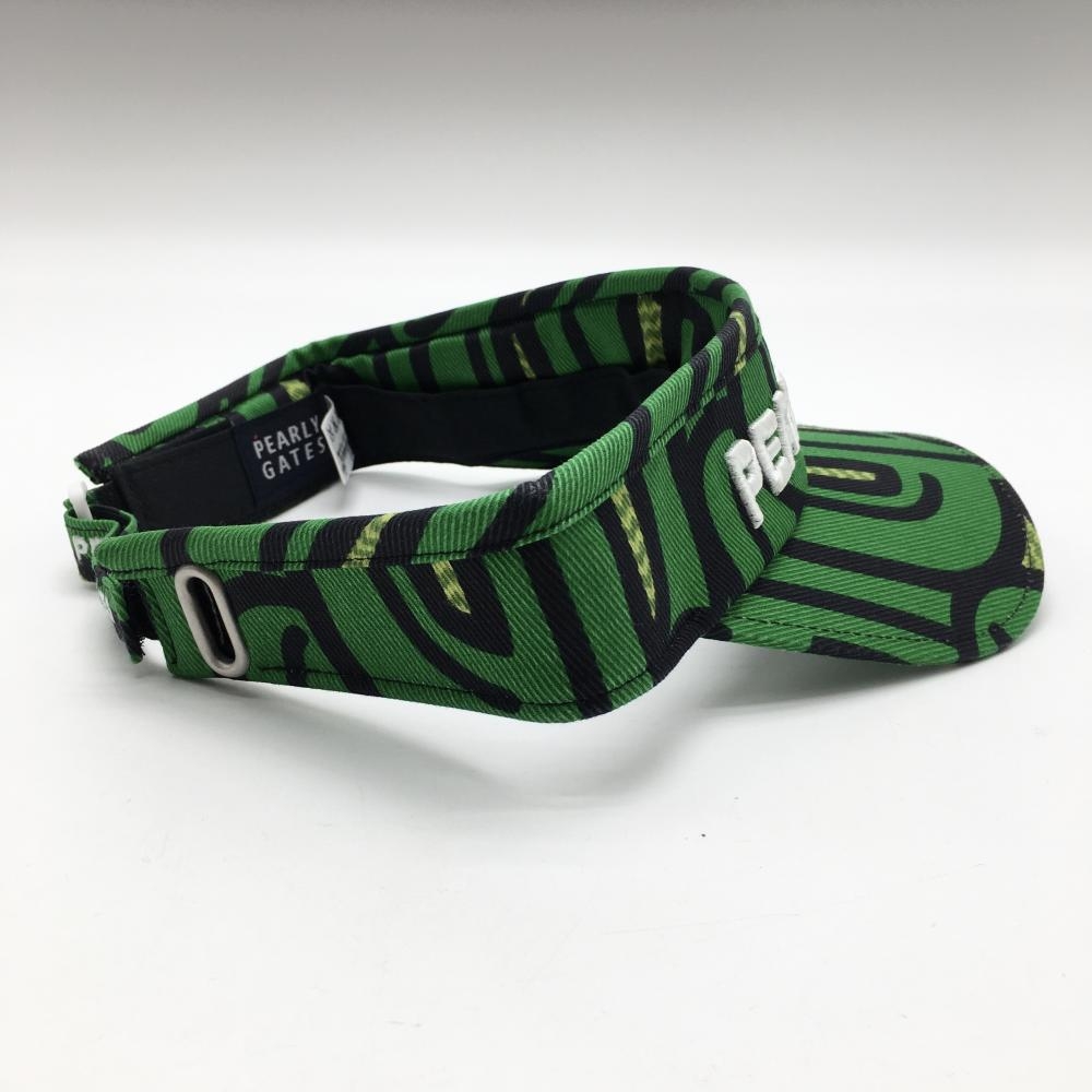 【美品】パーリーゲイツ サンバイザー グリーン×黒×白 立体ロゴ刺しゅう FR ゴルフウェア PEARLY GATES