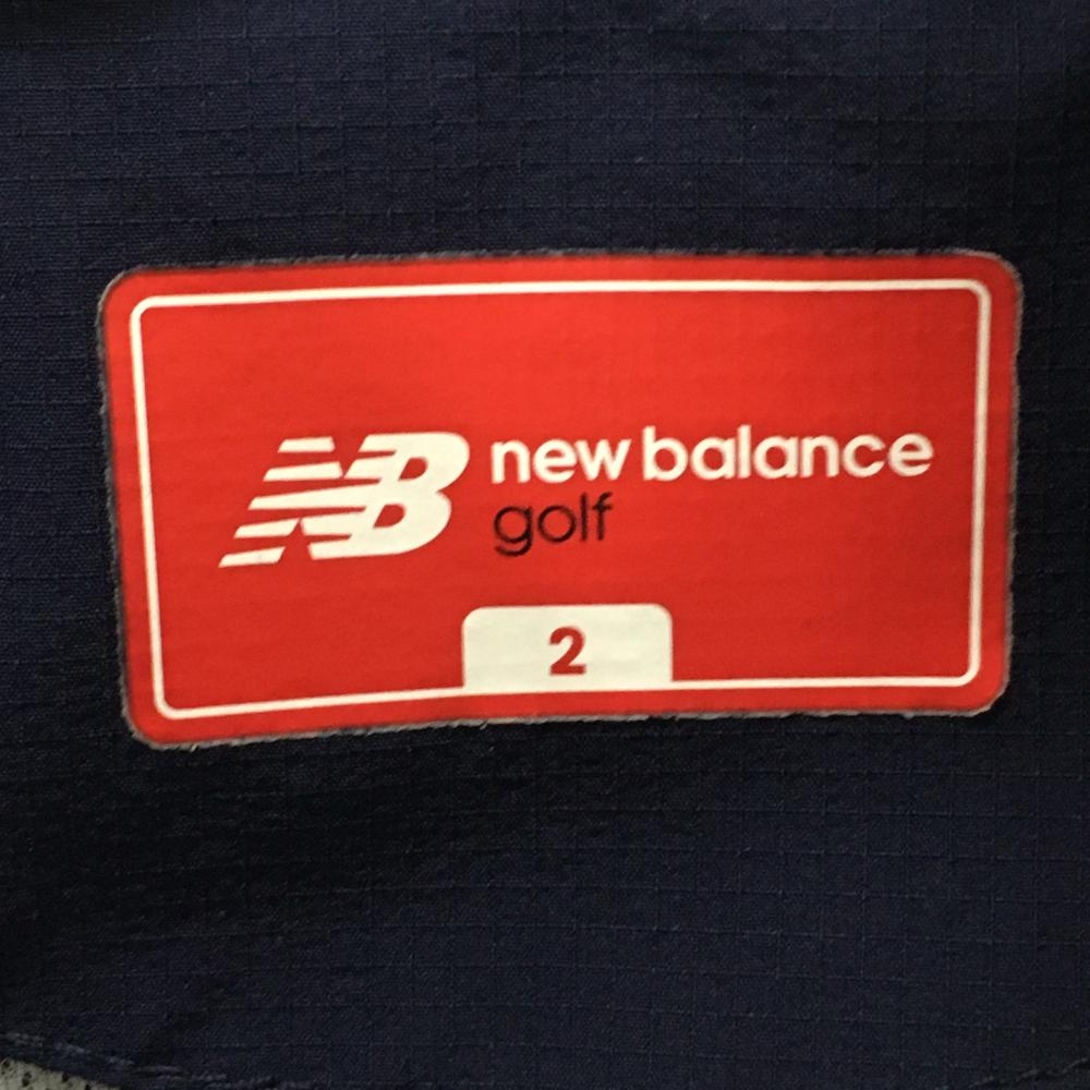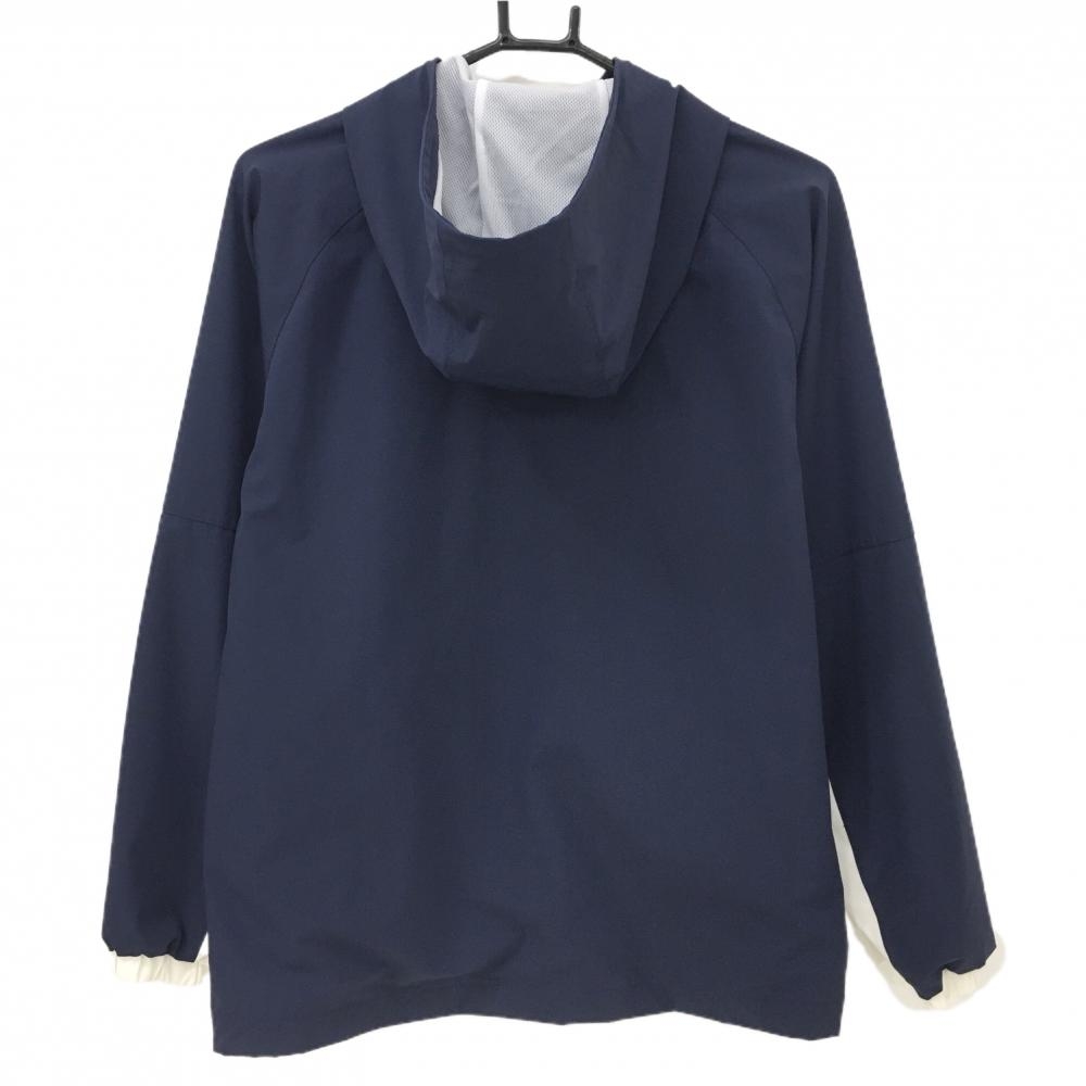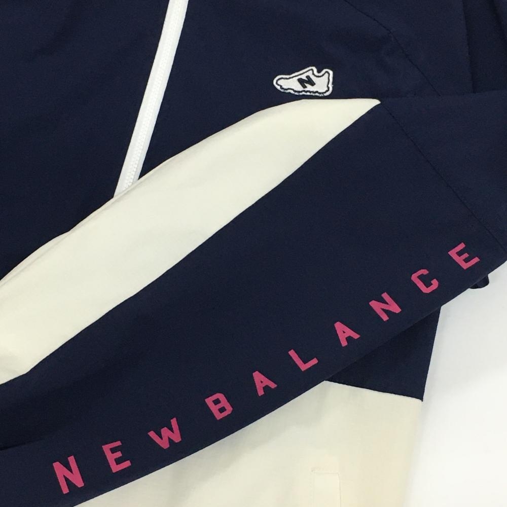 【超美品】ニューバランスゴルフ フード付きブルゾン ネイビー×白 袖ロゴプリント レディース 2(L) ゴルフウェア New Balance