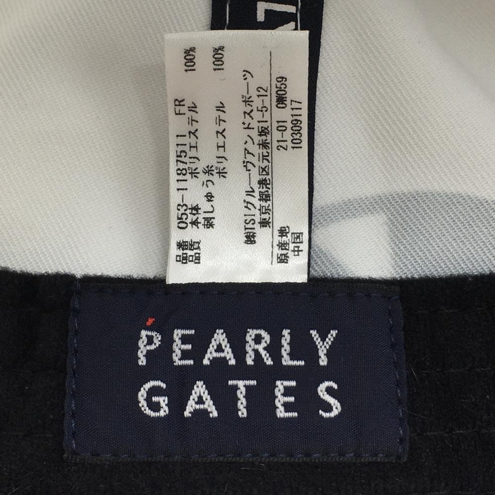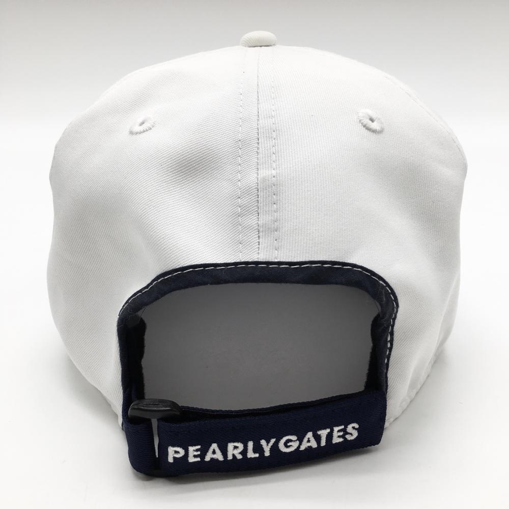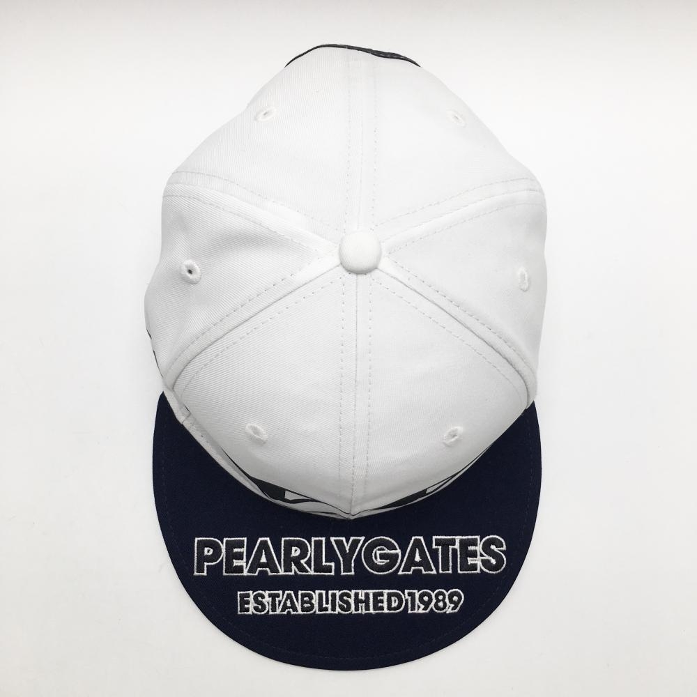 【美品】パーリーゲイツ フラットキャップ 白×ネイビー 縄模様 つばロゴ刺しゅう FR ゴルフウェア PEARLY GATES