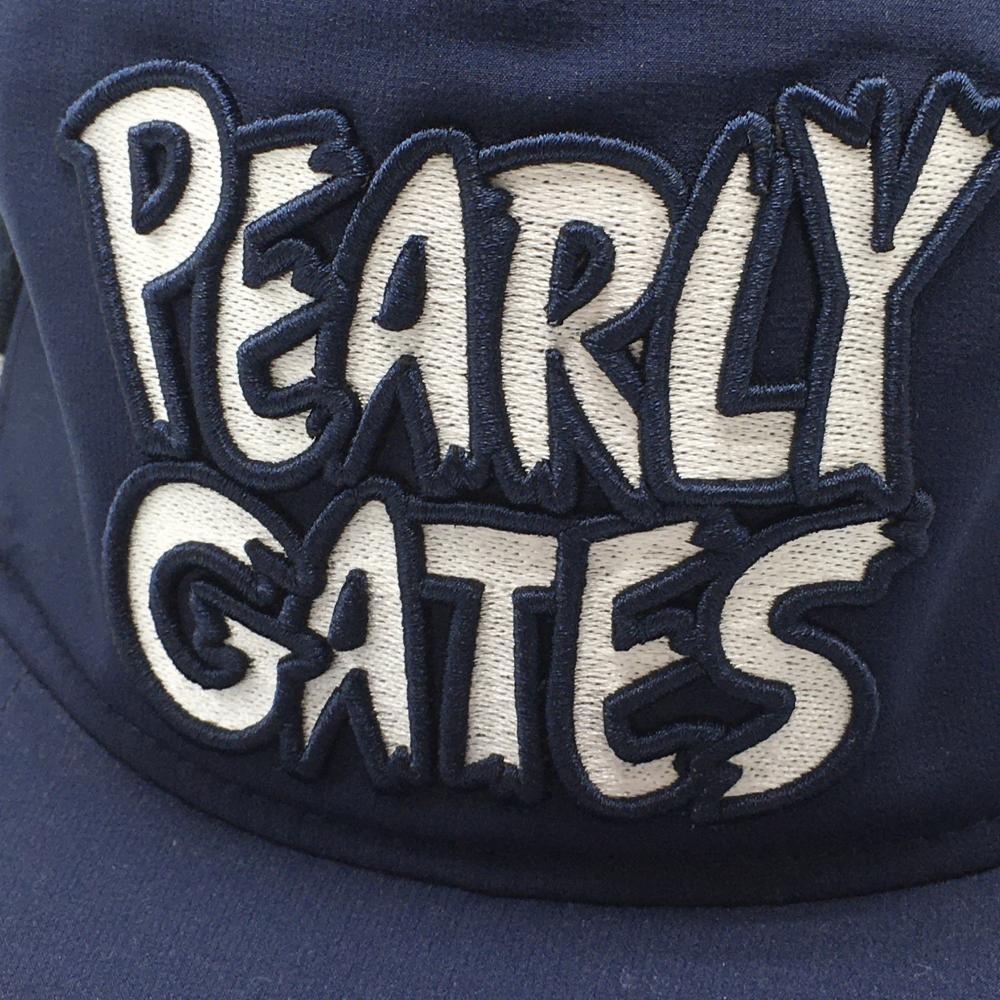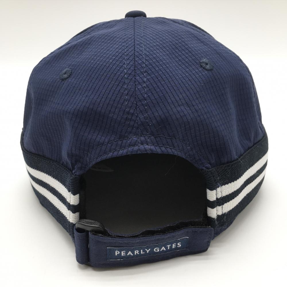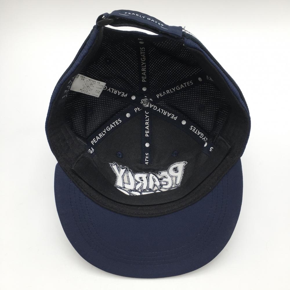 【超美品】パーリーゲイツ フラットキャップ ネイビー×白 メッシュ調 一部ボーダーライン FR ゴルフウェア PEARLY GATES