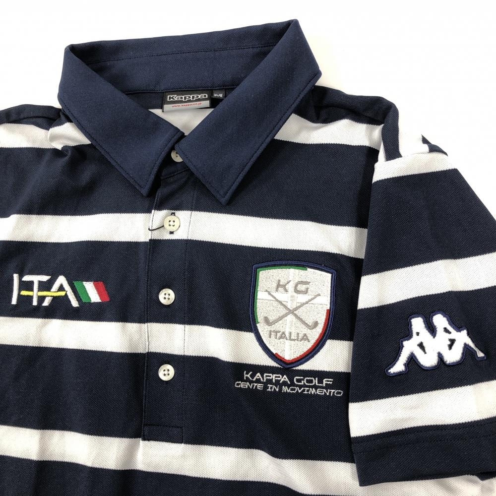 【新品】カッパ 半袖ポロシャツ ネイビー×白 ボーダー 吸水速乾 UVカット ストレッチ メンズ M ゴルフウェア Kappa