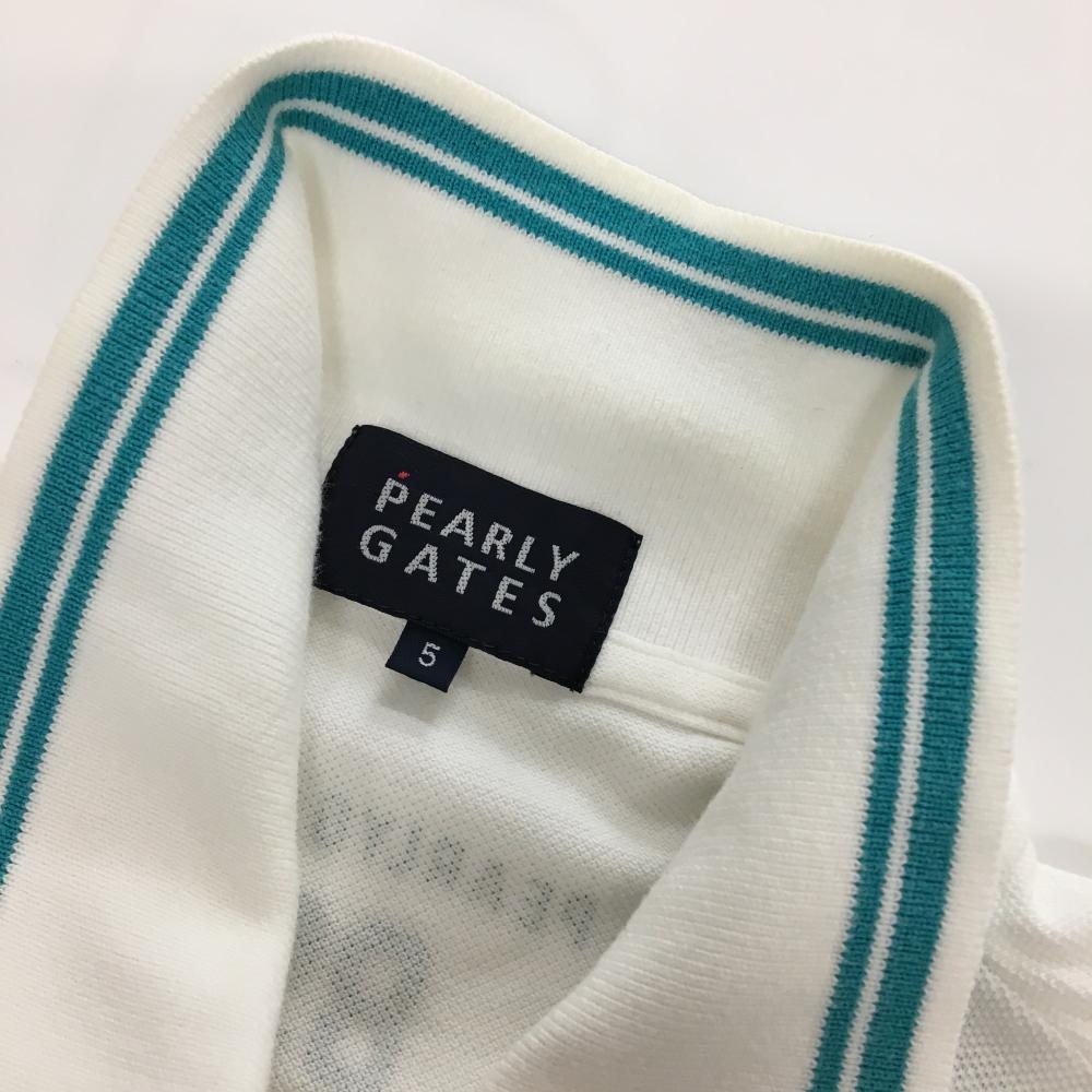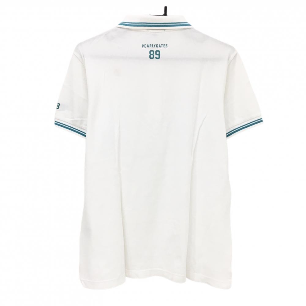 パーリーゲイツ 半袖ポロシャツ 白×ライトブルー ニコちゃん スマイル メンズ 5(L) ゴルフウェア PEARLY GATES