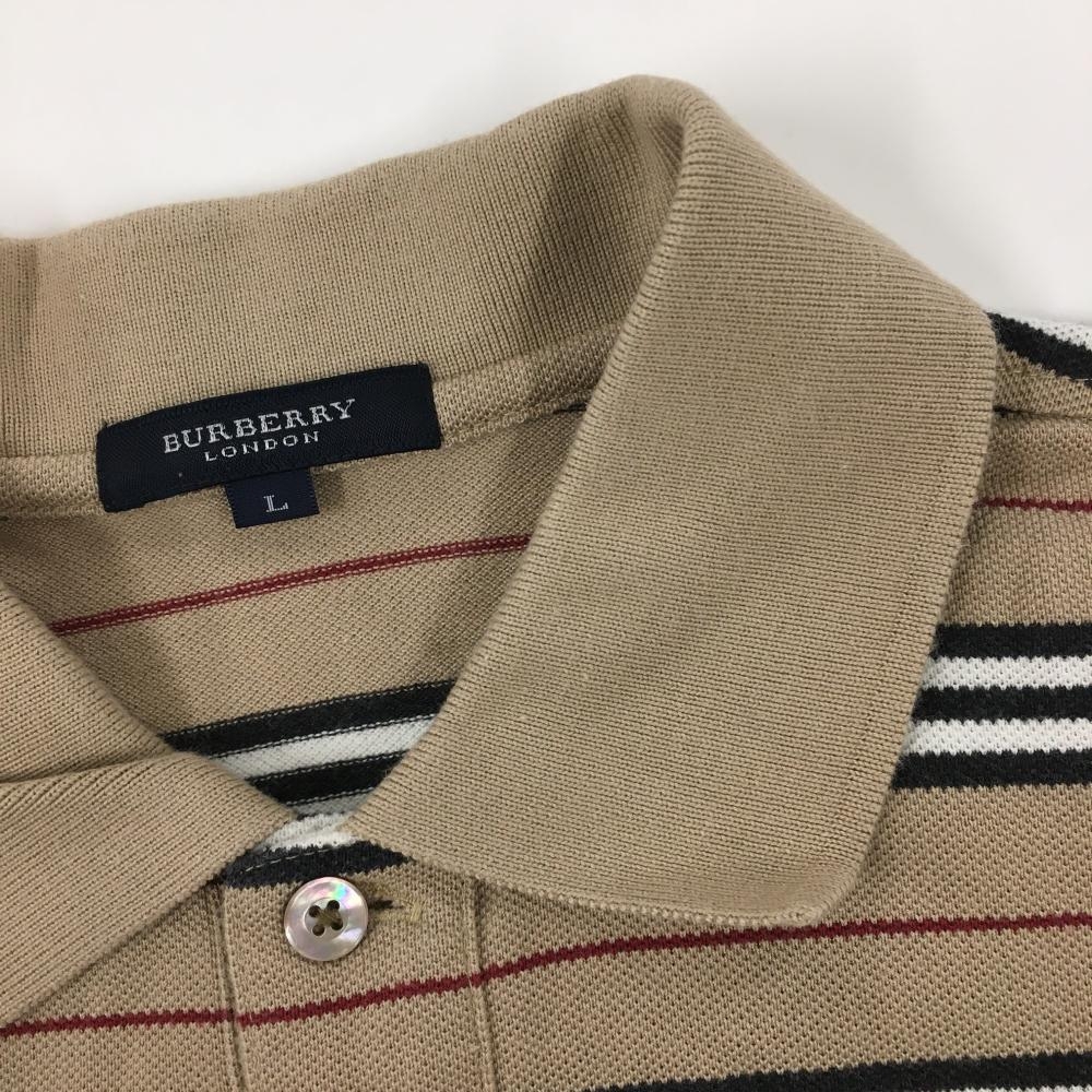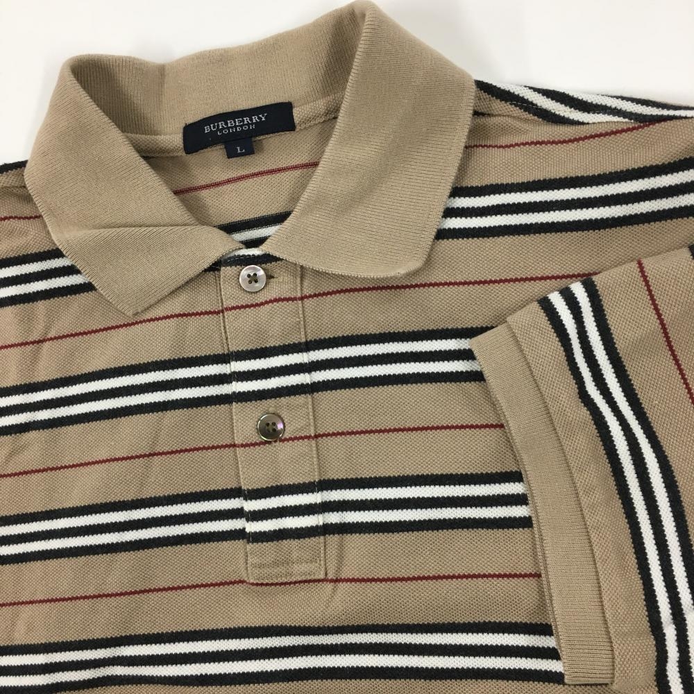 バーバリー 半袖ポロシャツ ブラウン×黒 ボーダー メンズ L ゴルフウェア BURBERRY GOLF