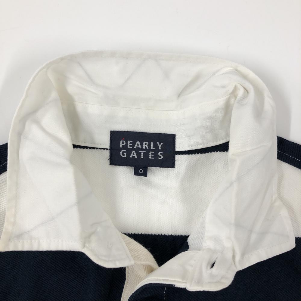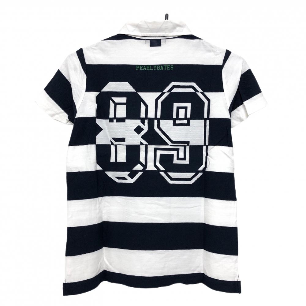 パーリーゲイツ 半袖ポロシャツ 白×ネイビー ボーダー 後ろロゴ レディース 0(S) ゴルフウェア PEARLY GATES