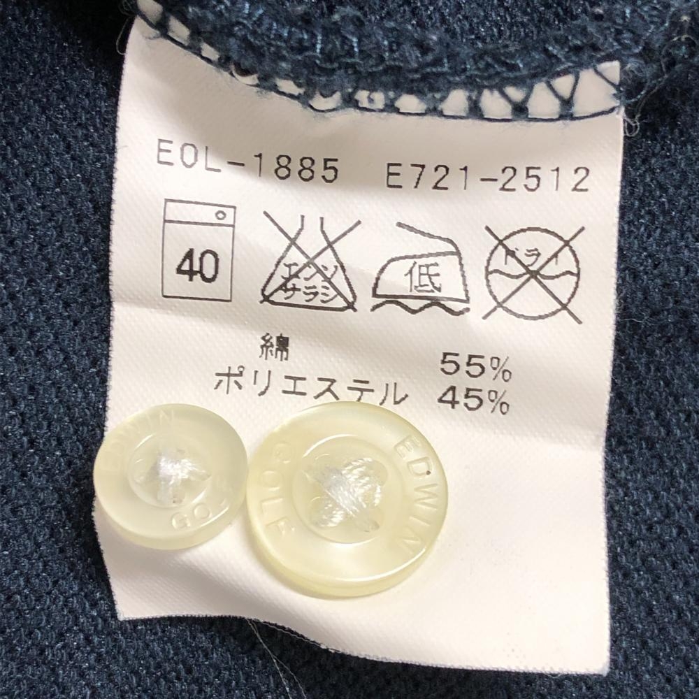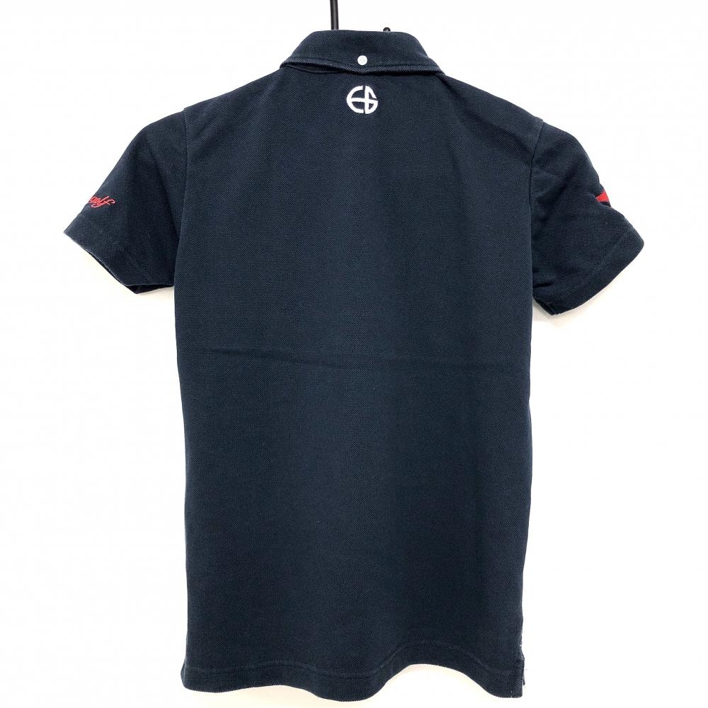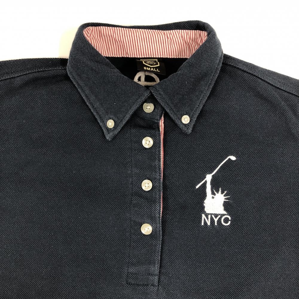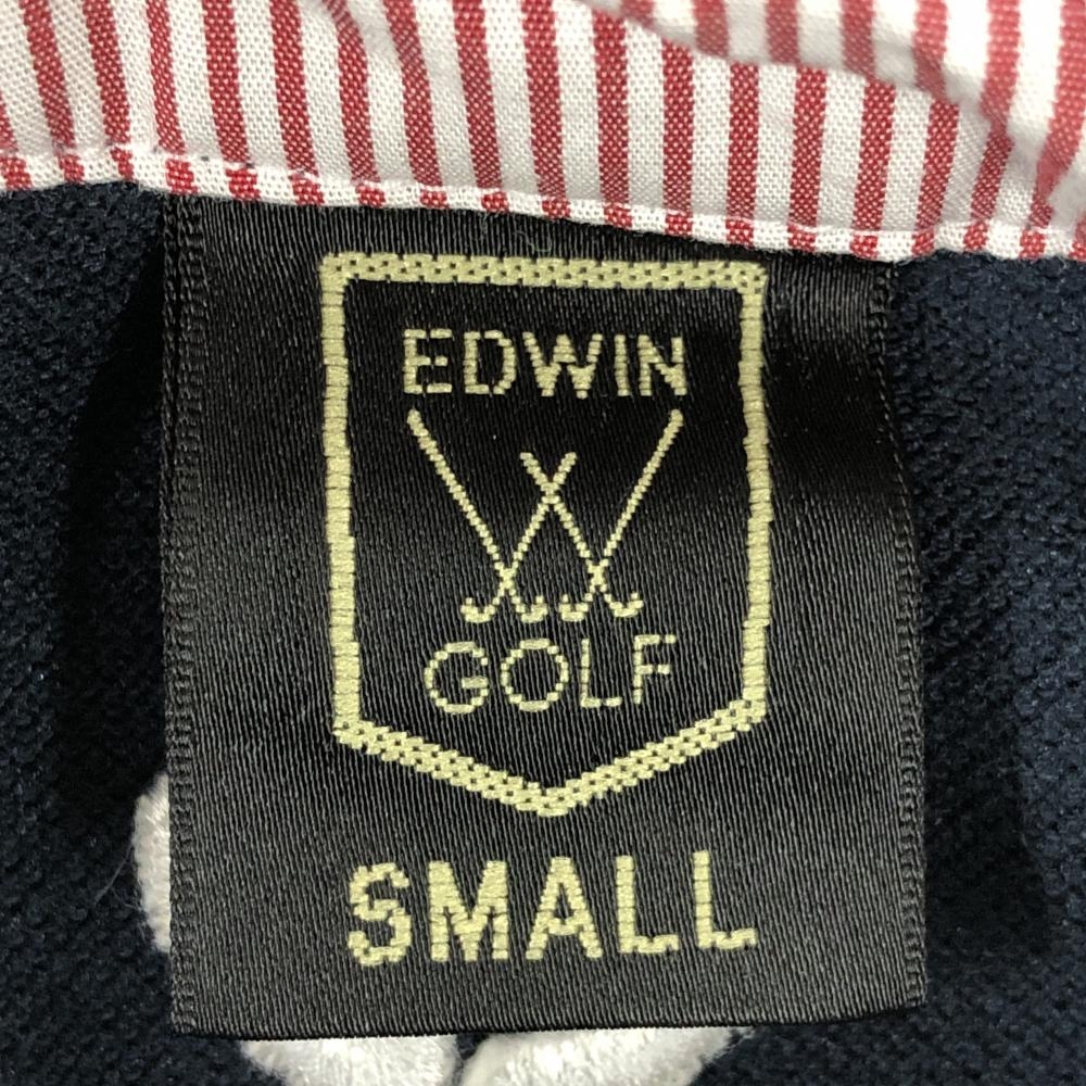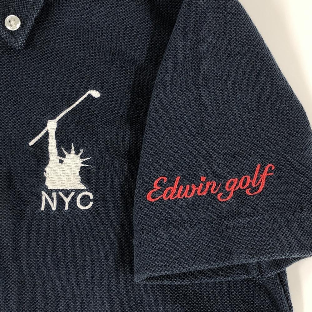 エドウィンゴルフ 半袖ポロシャツ ネイビー ボタンダウン 袖ロゴ刺しゅう レディース SMALL ゴルフウェア EDWIN GOLF