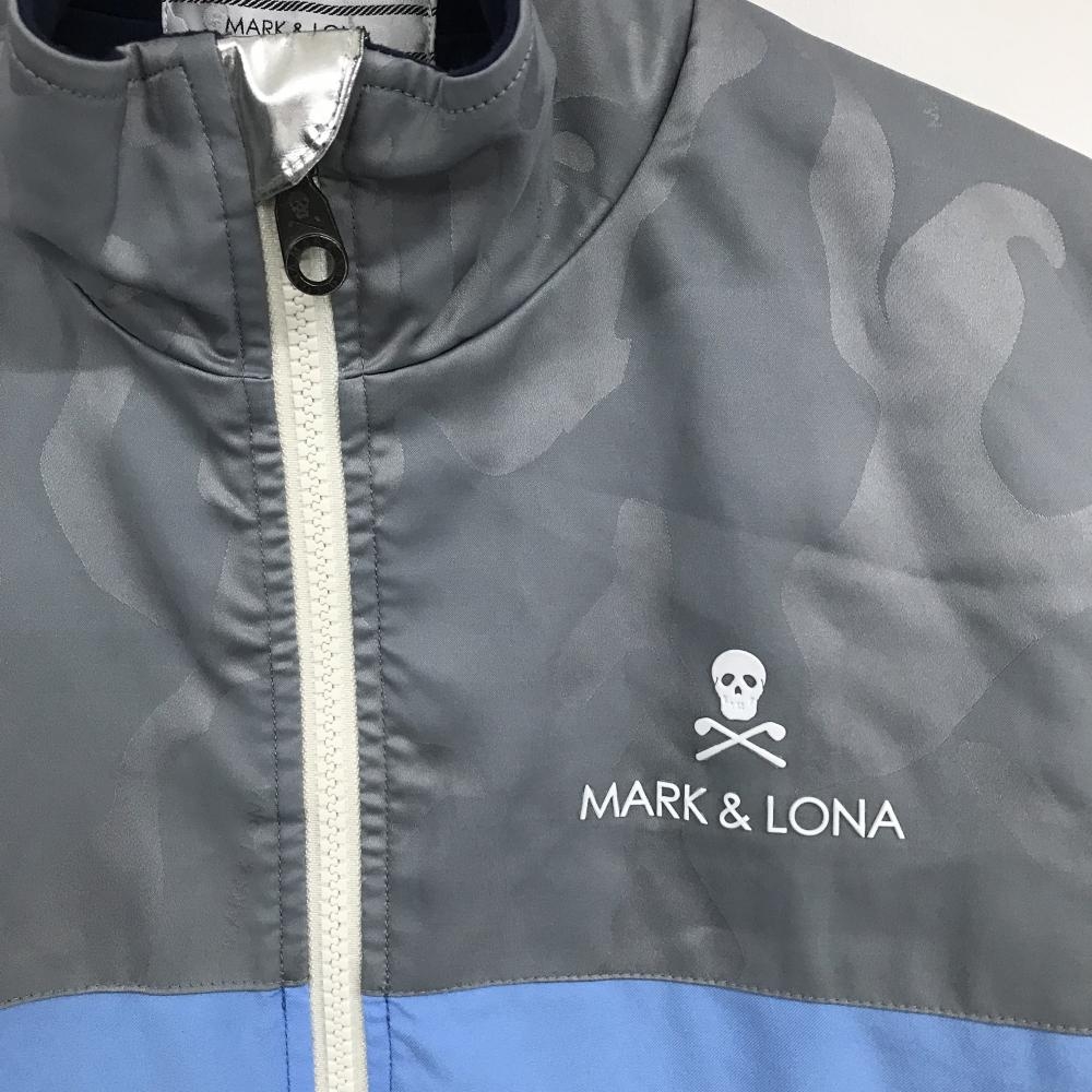マークアンドロナ ジャケットブルゾン グレー×ネイビー 一部微起毛 上部カモフラ スカル メンズ 44(S) ゴルフウェア MARK&LONA