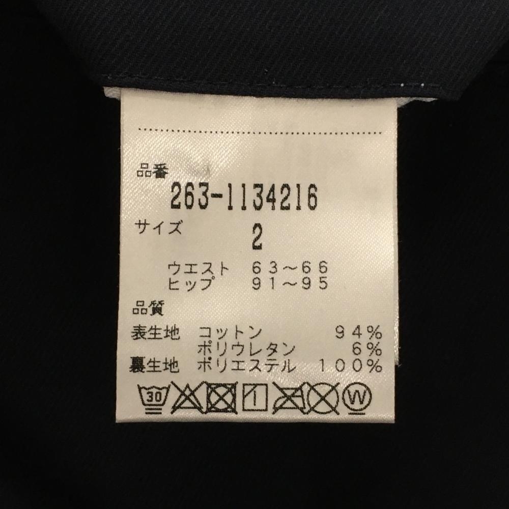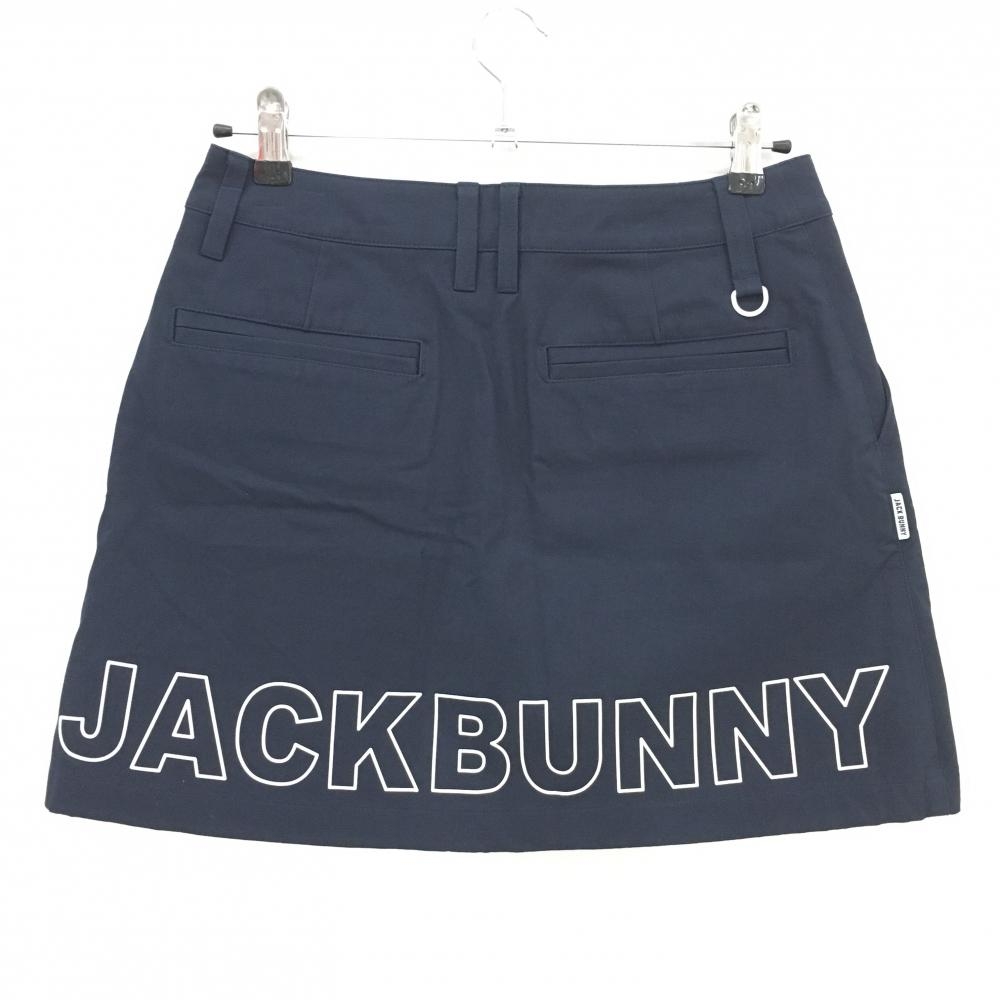 【美品】ジャックバニー スカート ネイビー×白 ストレッチ 裾ビッグロゴ 内側インナーパンツ レディース 2(L) ゴルフウェア Jack Bunny