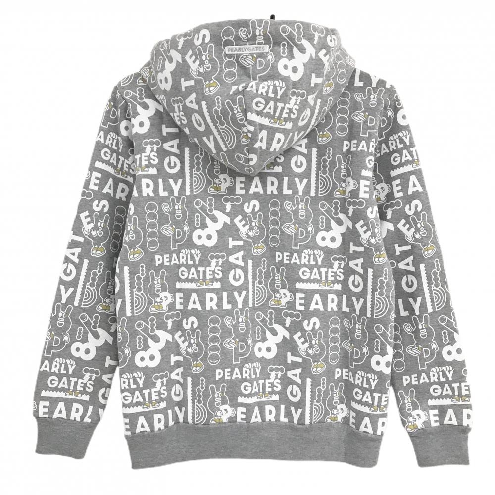 【新品】パーリーゲイツ ジップパーカー グレー×白 ロゴ総柄 どうしちゃったPG 裏起毛 レディース 0(S) ゴルフウェア PEARLY GATES